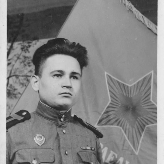 На фронт попал в ноябре 1941 года. Путь прошел от рядового стрелка до командира взвода. От радиста-телеграфиста до начальника радиостанции.Ранений не было. Войну закончил в 1948 г. После войны закончил педагогический институт. Преподавал историю. Часто общался с детьми, рассказывал о войне. Много лет был директором школы в г. Комсомольске-на-Амуре.