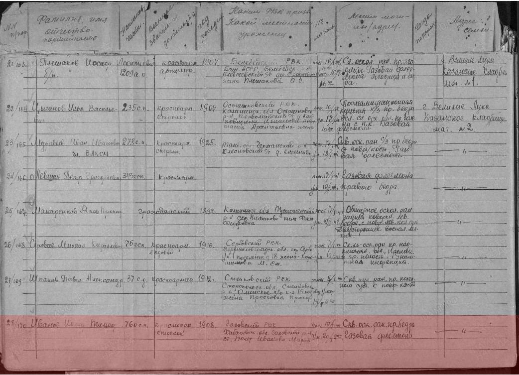 Дата призыва 04.02.1943 Рядовой красноармеец Умер от ран 20 января 1944 в госпитале Занесен в книгу памяти Хабаровского края, Том 2