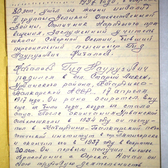 Кабалоев Гид Наурузович, родился 17 апреля 1917 года в Российской Империи в Нальчикском округе, Терской Области (селение Старый лескен, Урванского района, Кабардино - Балкарской АССР), в семье крестьянина-середняка (кулака). Отец Науруз Гуаджиевич Кабалоев (1986 года рождения) погиб в 1918 году при столкновении с Красными бандами под Старым Лескеном. У семьи отняли львинную долю имущества, в результате, семья переехала в селение Озрек (Лескенский район КБР). 1930 год Гид Наурузович окончил Озрекскую начальную школу.1932 год окончил Урванскую Сельхоз - школу. 1934 год поступил в Педагогический институт в городе Пятигорск. Мать Гида Дзагурова умерла в 1937 году. Семью постигла репрессия, лишив всю семью имущества жилья и средств для существования.1937 год окончил Педагогический институт. С 1 сентября по 30 мая 1942 года работал преподавателем математики Докшукинской средней школы в городе Докшукино. 1942 год. 30 мая был мобилизован в Красную Армию.