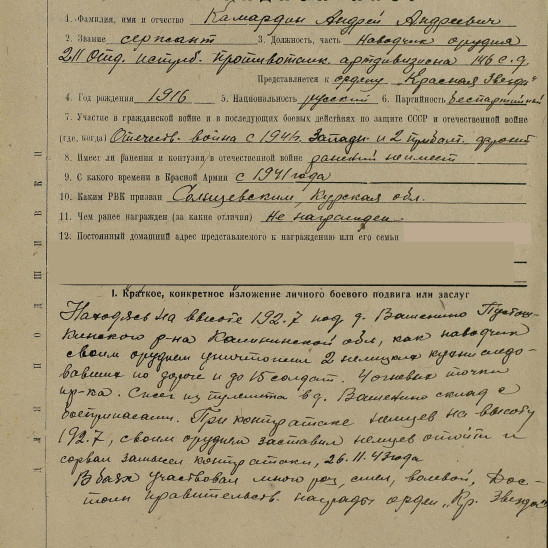 Камардин Андрей Андреевич прошел войну от первого до последнего дня. И еще год после Великой Победы прослужил в Красной Армии.