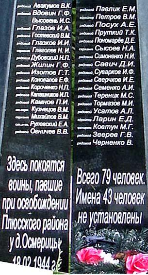 Камнев Павел Иванович-красноармеец 56-й СД геройски погиб 18.02.44г и похоронен южн. окр. д. Осмарицы Плюсского р-на Псковской обл.ВМЦ -60-487 . Имя на обелиске БМ.Этот фронтовик мой односельчанин.