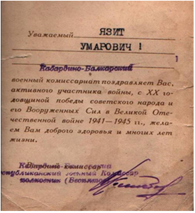 Место рождения: с. Кызбурун 1, Баксанский район КБАССР