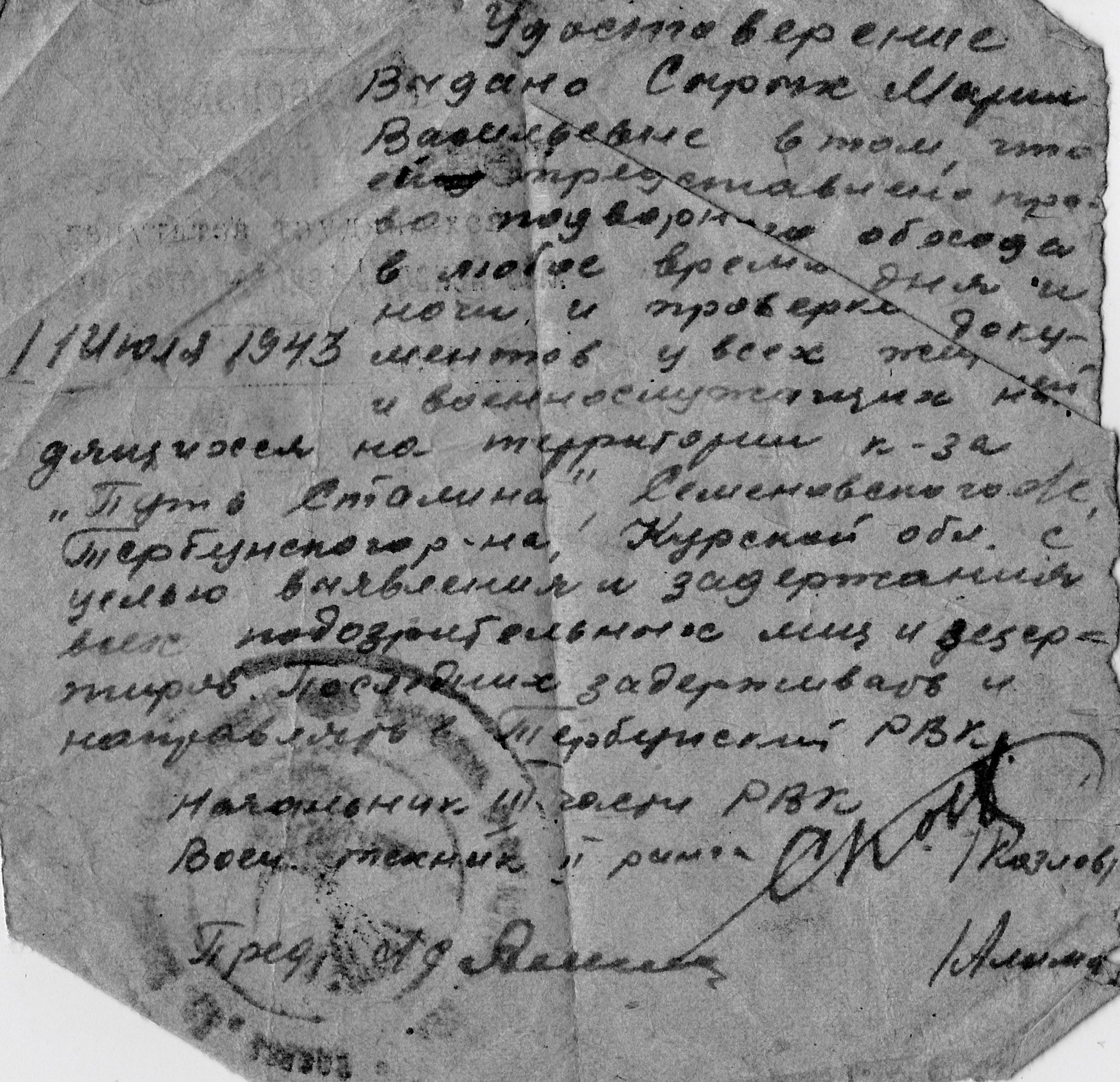 Моя бабушка Карбанова (Сырых) Мария Васильевна, не была солдатом во время Великой Отечественной Войны, но что такое война она очень хорошо знала. Родом они из Тербунского района Курской области, война сюда докатилась уже в октябре 1941 года, немцы бомбили станции железной дороги. Самое страшное началось летом 1942 года, немцы в плотную подошли к селу Ждановка, где жила бабушка. Несколько дней шёл бой. Все защищавшие село и дорогу на Воронеж погибли. Прабабушка всегда со слезали вспоминала, как немцы вошли в Ждановку, как заставили рыть могилы сначала для своих солдат, а потом общую могилу для погибших Советских Воинов, как она с оставшимися в живых односельчанами на себе вытаскивала тела погибших Русских Солдат. Рассказывала она о том, как фашисты расстреляли двух мальчишек, которые нашли в разбитых окопах ружье. Рассказывала она и о страшном голоде, который начался зимой, о том, как выжили и дождались освобождения в феврале 1943 года. Весной 1943 года все, кто остался в колхозе, вышли на поля. Не было ни тракторов, ни машин, ни даже лошадей. Как говорила бабушка: «Сами были за лошадь». И маленькие, и большие все помогали чем могли. Младшие - сеяли, бегали за водой, за скудным обедом из хлеба. Кто постарше тащил борону, которая разбивает большие куски, оставленные плугом, а самые старшие уже тащили и сам плуг. Прабабушка вспоминала: «Ведь если бы не посеяли – осенью нечего было бы есть, по умирали бы все с голоду. Помочь-то было некому, кругом была война». Когда немцев прогнали, прабабушку призвали на службу сначала в Наркомат Внутренних дел, а летом 1943 года перевели в «Смерш», где она прослужила до конца войны. С огромной радостью она всегда вспоминала тот день, когда уже после окончания войны в августе 1945 года, её наконец направили работать по специальности «учитель» в школу, которой она посвятила 50 лет. Бабушки не стало в 2012 году.