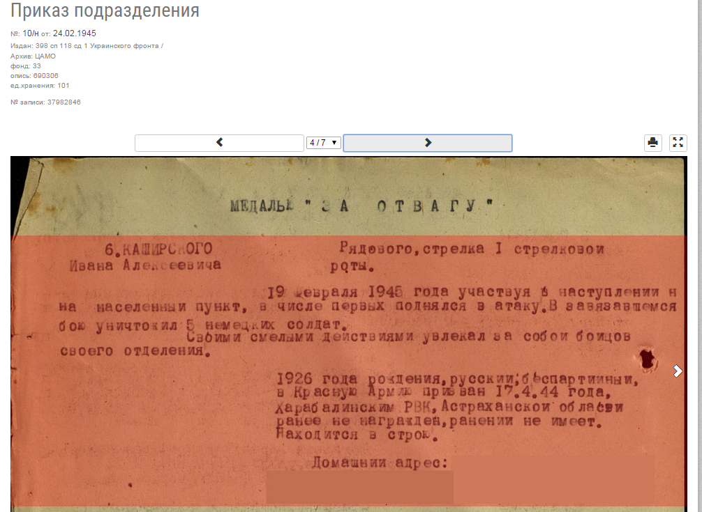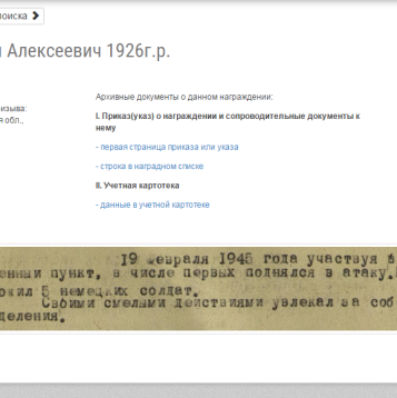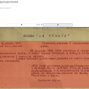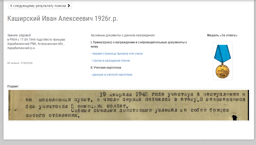 Призван на войну 17 апреля 1943 году в возрасте 18 лет, в 19 лет получил первую медаль, медаль "За отвагу". 19 февраля 1945 года будучи рядовым стрелком 1 стрелковой роты, участвуя в наступлении на населенный пункт, в числе первых поднялся в атаку.В завязавшемся бою уничтожил 5 немецких солдат.Своим смелыми действиями увлекал за собой бойцов своего отделения, ранение не имел, оставался в строю. В 1945 году получил звание Старшего сержанта - радист 1-го танкового батальона. Последнее место службы был 64-гвардейская танковая бригада. В августе 1944 считался пропавшим без вести. Дошел до Берлина, в 20 лет вернулся с войны.