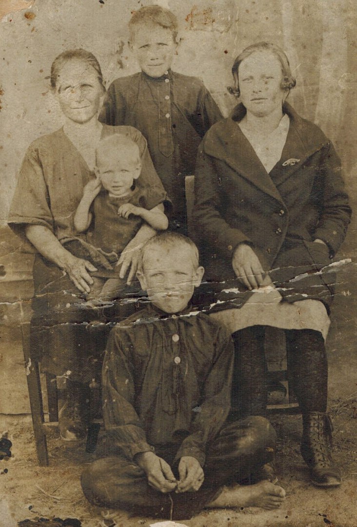 Я хочу рассказать о родном брате моей прабабушки, о Кирпине Николае Васильевиче. Он прошел всю войну - служил в разведке, был ранен, был в плену, бежал из плена, имеет награды. Более точной информацией я не владею, но возможно другие родственники смогут уточнить детали. На фото Николай Васильевич /еще ребенок/, со своей мамой, с сестрой Елизаветой- моей прабабушкой и с братом Кирпиным Яковом Васильевичем.