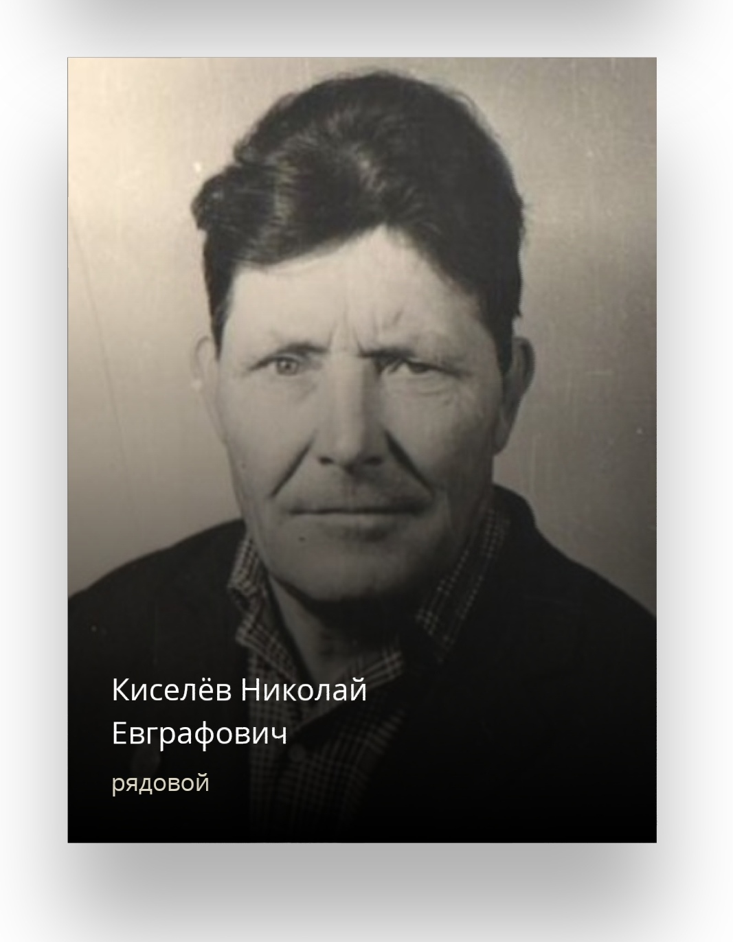 Боевой путь ветерана До войны он занимался охотой, рыбалкой, заготавливал кедровые орехи, но делал это необычным способом. Собирая шишки на верхушках кедра, он не слезая с дерева, по дощечке перебирался на следующее дерево. Это ему пригодилось на фронте. Оставаясь незамеченным для врага, по верхушкам деревьев он ходил в разведку. Во время очередной разведки в 1943 году получил ранение. Во время Финской войны прадед служил на корабле. Бомбёжка, было сыро и холодно, солдаты голодали. Дед Николай соорудил рыболовную снасть и ловил рыбу. Кто бы не пытался рыбачить, ничего не выходило. А он всегда с уловом. Таким образом он спасал солдат от голода.