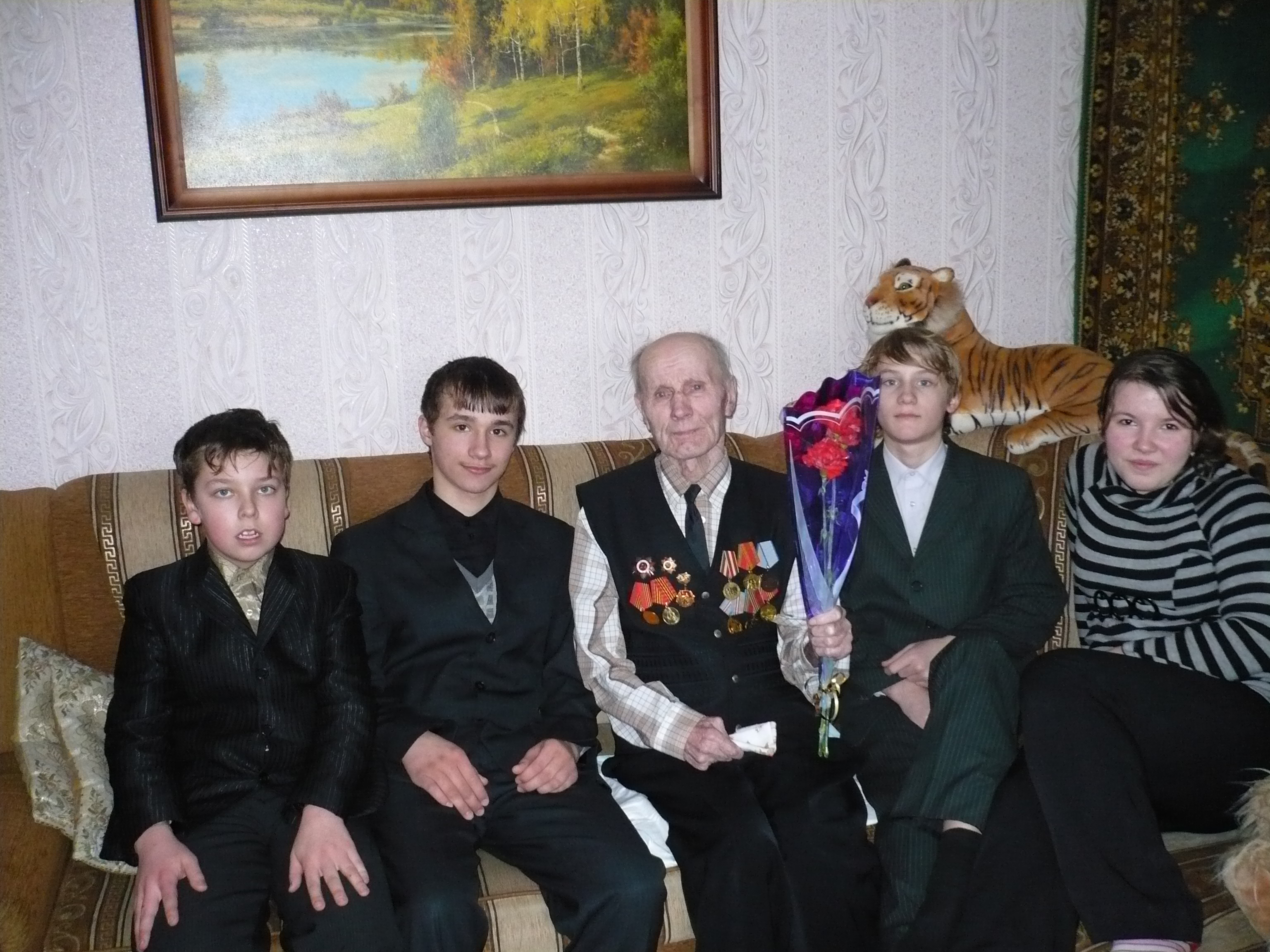В нашей семье есть традиция - каждый год 9 мая мы собираемся за столом в семейном кругу, поем военные песни, вспоминаем тех людей - солдат, которые отдали свои жизни за мир на земле. Сегодня, мысленно возвращаясь к той поре, мы отчётливо понимаем, что наш народ прошёл испытания, которые под силу только великому народу. Помнить об этом наша святая обязанность. Забыть об этом - преступление. Деда нет с нами, но эта традиция будет продолжаться из года в год. Я передам её своим детям и внукам. Мною в память о деде написаны несколько стихотворений о нём, о войне, о Победе. Написаны мною 2 главы "Повести о стойком "оловянном" солдатике". Эта повесть- дань моего уважения к своему деду.