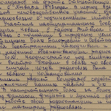 В период всех боёв дивизии он принимал непосредственное участие, обеспечивая штаб дивизии радиосвязью.Он участвовал в наступательных боях за Великие Луки, Невель, в районе Витебска держал бесперебойную связь с полками в трудных условиях боя.Был участником в освободительных боях Белоруссии и Советской Прибалтики, в наступательных боях за Полоцк, Краславу, Двинс