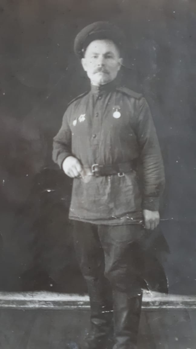 В Красной Армии находился в рядовом составе. Был сапёром 8 Отдельного инженерного батальона 12 Армии. Находясь больше месяца на передовой в районе боёв х. Долгий-Троицкое, чётко и в срок, часто под обстрелом противника, выполнял боевые задания по инженерному обеспечению стрелковых подразделений. При постройке надводных деревянных мостов через реку Северный Донец у населённых пунктов Желтое, Лопаскино, Давыдово-Никольское, отличался высокой производительностью в работе. На постройке подводных мостов через реку Северный Донец у с. Раевка и с. Лопаскино, пренебрегая отдыхом и опасностью, работая по 18-20 часов в сутки в воде, из них 10-12 часов под водой, обеспечил качественно и в срок все подводные плотничьи работы. За проявленные доблесть и мужество был представлен к награждению медалью "ЗА ОТВАГУ". Также был удостоен медали "ЗА БОЕВЫЕ ЗАСЛУГИ", медали "ЗА ПОБЕДУ НАД ГЕРМАНИЕЙ В ВЕЛИКОЙ ОТЕЧЕСТВЕННОЙ ВОЙНЕ 1941-1945 гг.", ордена Отечественной войны II степени и других наград. Домой вернулся в ноябре 1945 года.
