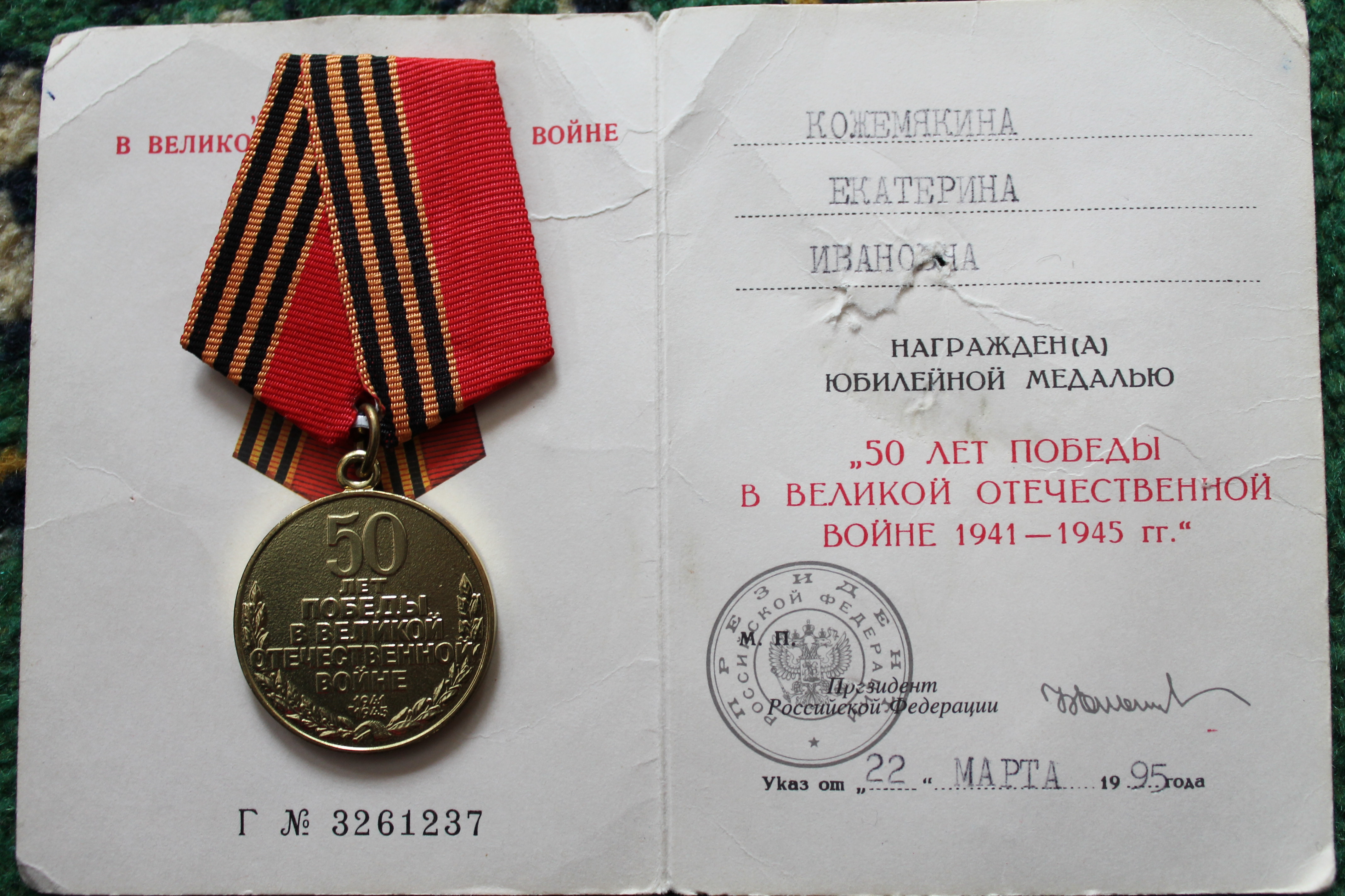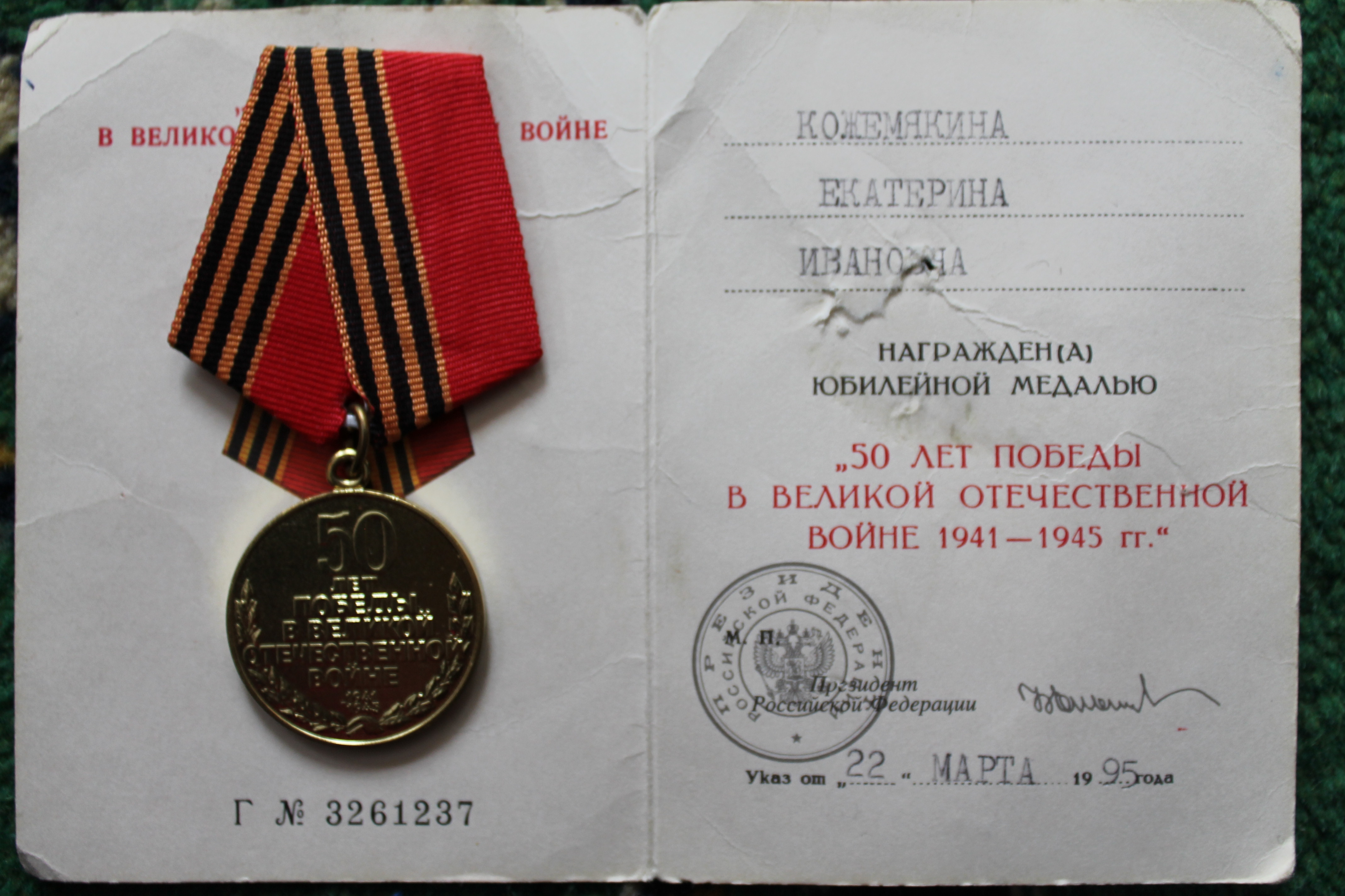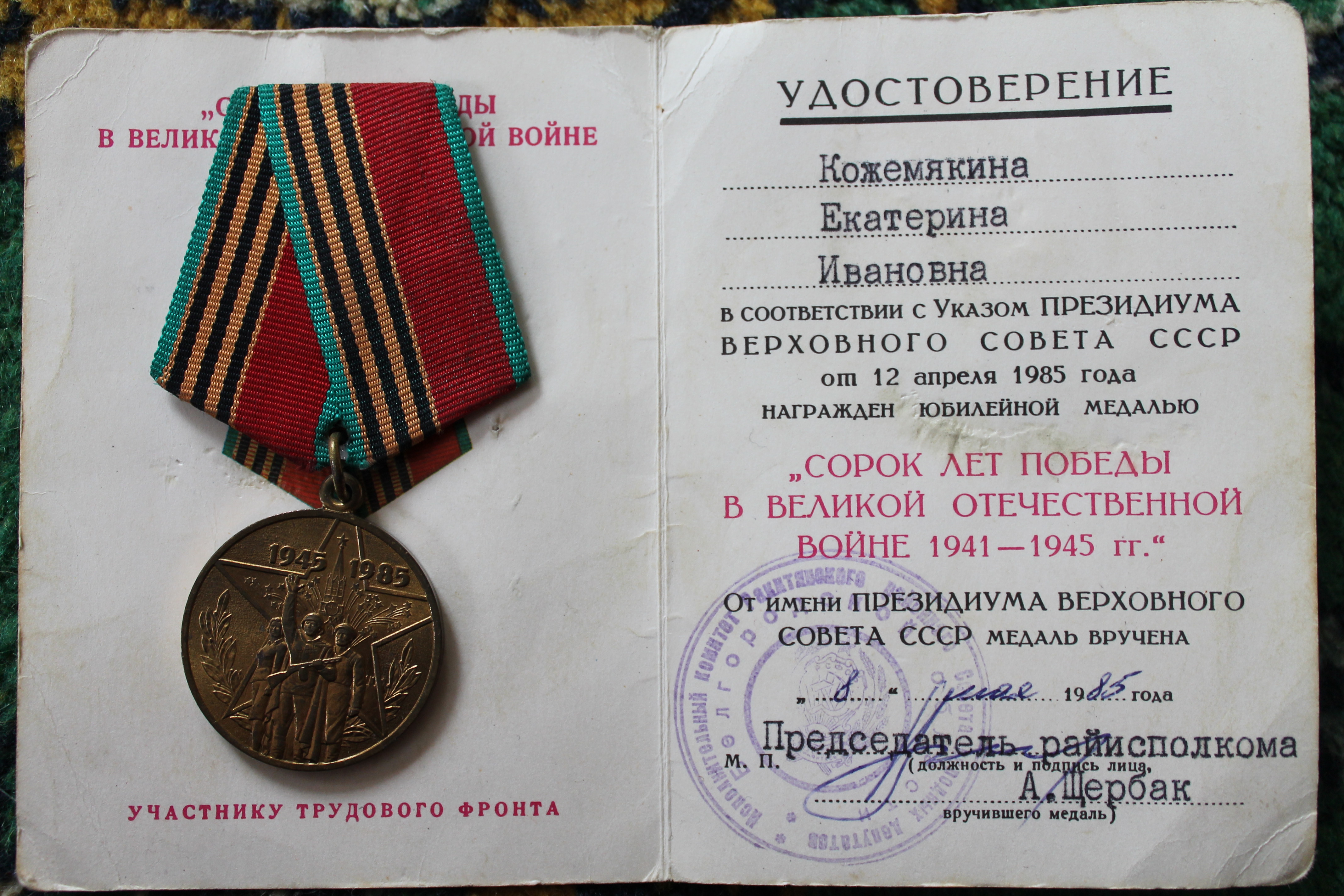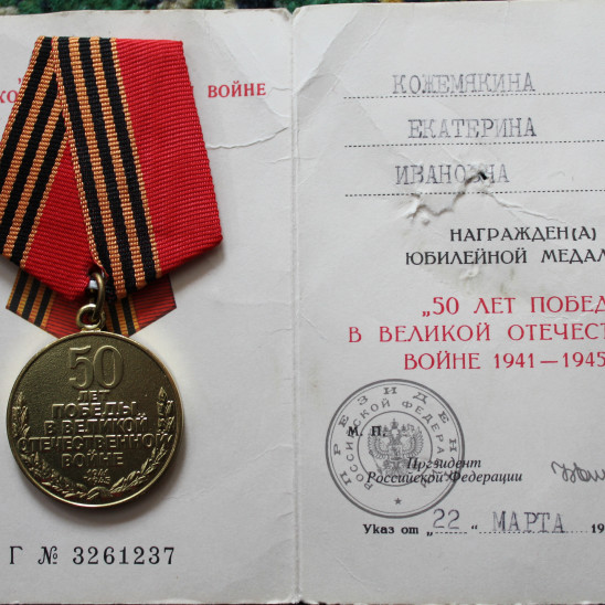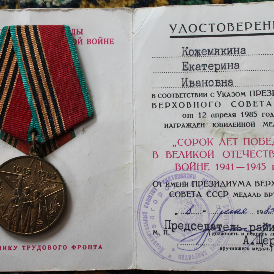 юбилейными медалями. Муж Екатерины Ивановны, Кожемякин Кузьма Сергеевич участник Великой