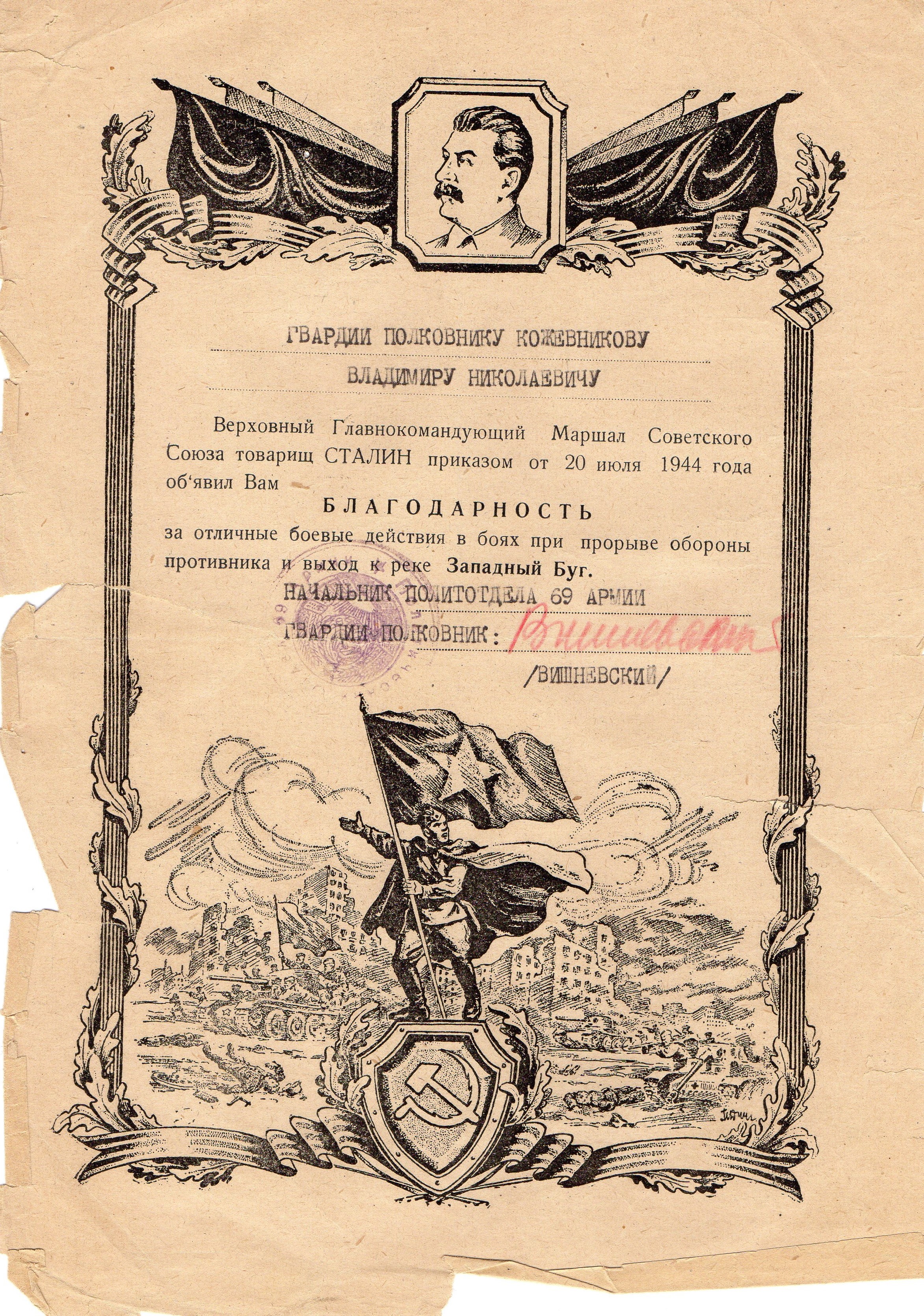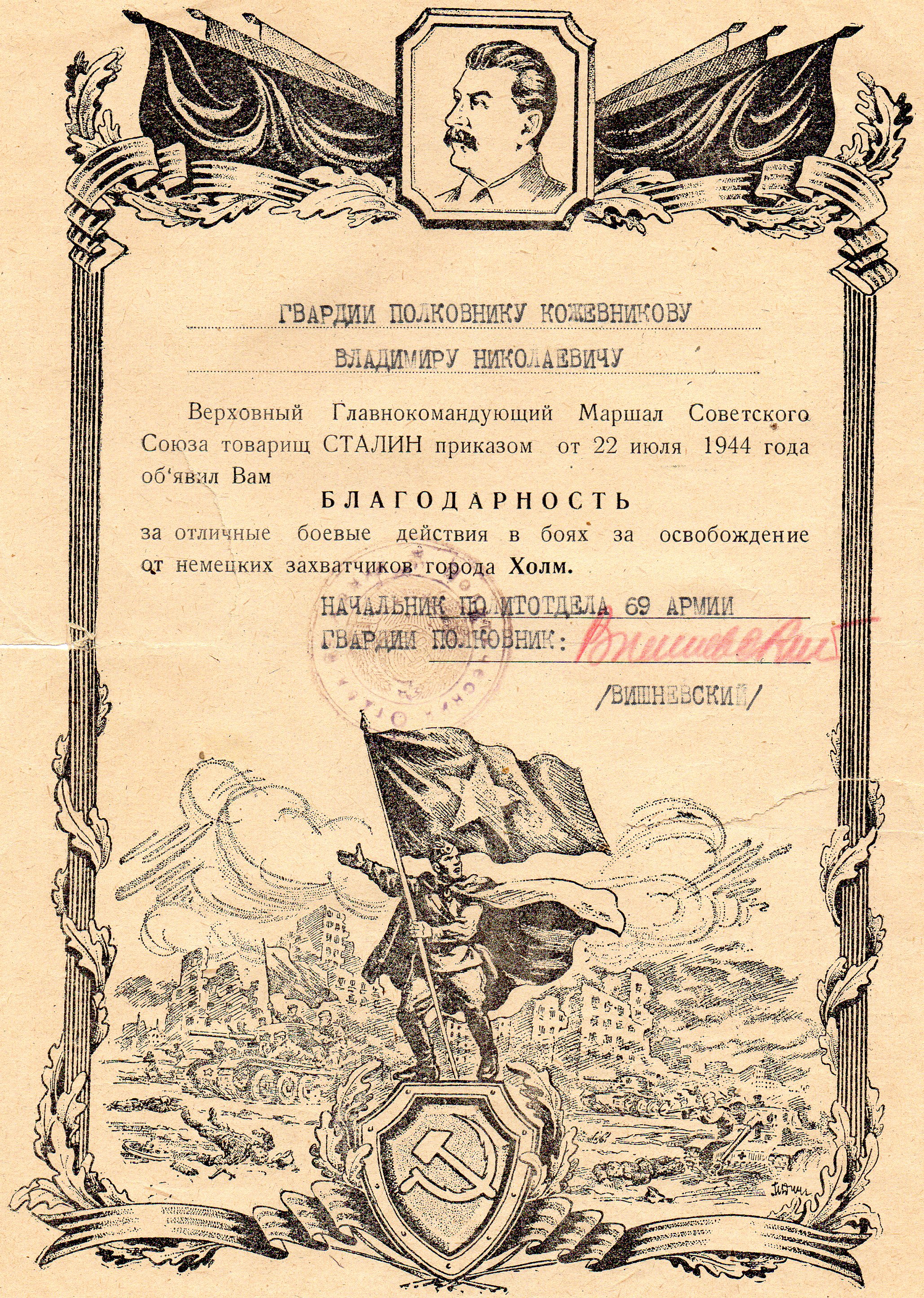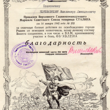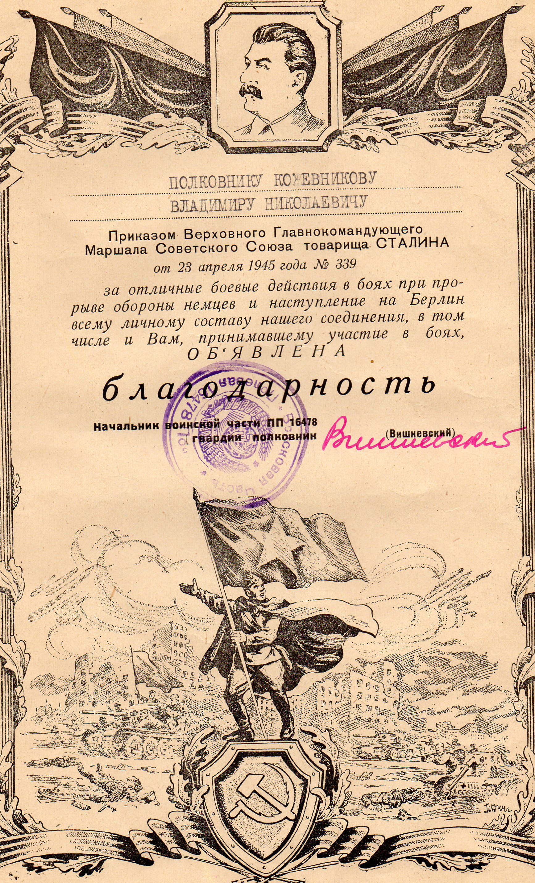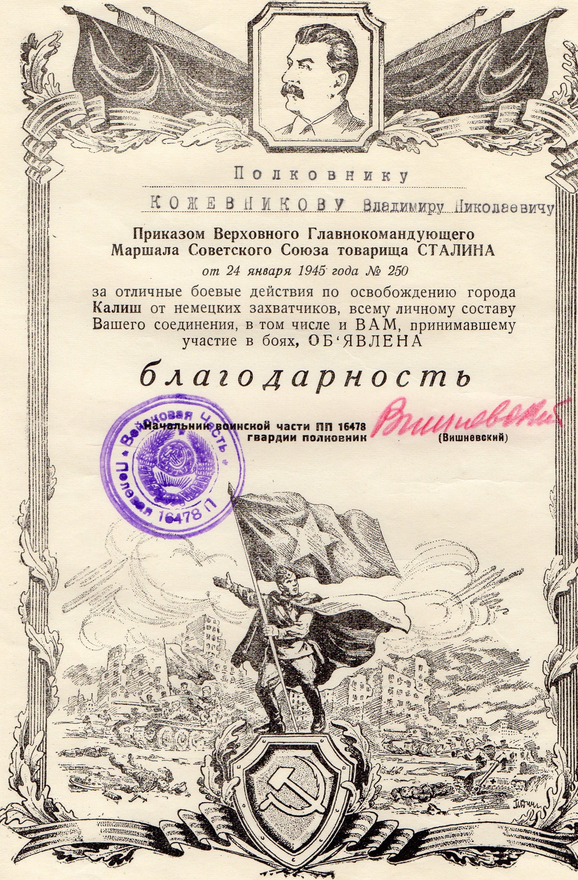 Боевой путь моего дедушки Кожевникова Владимира Николаевича в листках учета и грамотах