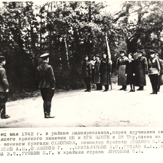 Красавченко Николай Прокофьевич (1916 - 1993) - организатор партизанского движения. Родился в станице Фастовецкая Тихорецкого района Краснодарского края. В мае 1940 г. был избран секретарем МГК ВЛКСМ по пропаганде. В этой должности его застала Великая Отечественная война. В июле 1941 г. он в числе 12 секретарей обкомов и РК ВЛКСМ был направлен уполномоченным Государственного Комитета Обороны по строительству оборонительных рубежей на дальних подступах к Москве в Смоленскую область и был назначен комиссаром Вязьминского укрепрайона, который тянулся от Брянска до Ржева. В результате октябрьского наступления немцев, а затем прорыва ими фронта, Николай Прокофьевич вместе с другими оказался в тылу немцев, где неоднократно участвовал в боях, был организатором партизанских отрядов в районах Московской области, за что был награжден медалью "Партизану Отечественной войны 1 степени". Выйдя из окружения он продолжал работать в качестве секретаря Московского ГК ВЛКСМ и уполномоченного ГКО на ближних подступах к Москве и внес заметный вклад в мобилизацию сил молодежи и комсомольцев столицы для сокрушительного разгрома немцев под Москвой. В августе 1942 г. Красавченко Н.П. был назначен руководителем делегации студенческой молодежи СССР, принявшей участие в работе Первой международной антифашистской Ассамблеи студентов в Вашингтоне, призванной сплотить усилия молодежи на борьбу с фашизмом. В ноябре 1942 г. делегация получила полномочия представлять советскую молодежь на международной антифашистской конференции молодежи в Лондоне. Многомесячная успешная деятельность советской делегации за пределами нашей Родины, подробный отчет о ее работе Центральному Комитету партии в начале 1943 г. внесли изменения и в служебное положение Н.П. Красавченко. В январе 1943 г. он был избран первым секретарем МГК и МОК ВЛКСМ, членом бюро ЦК ВЛКСМ, вошел в состав Бюро МГК и МОКВКП(б) и работал в этой должности до начала 1950 г. Он был награжден в 1944 г. Орденом Трудового Красного Знамени, в 1947-1948 гг. двумя орденами Ленина, медалями "За оборону Москвы ", "За победу над фашистской Германией".