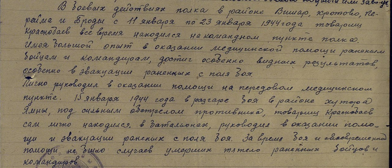 ФамилияКраснобаевИмяВикторОтчествоАрсентьевичДата рождения/Возраст__.__.1911Место рожденияСаратовская обл., г. ХвалынскДата и место призыва__.__.1940, Хвалынский РВК, Саратовская обл., Хвалынский р-нПоследнее место службы23 сдВоинское званиекапитан мед. сл.Причина выбытияумер от ранДата выбытия20.11.1944Первичное место захороненияЛатвийская ССР, Айзпутесский уезд, х. Бринти, южная окраина