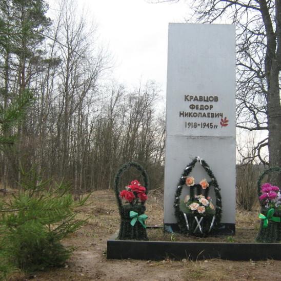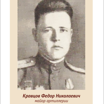 Кравцов Федор Николаевич старший брат моей мамы.В семье Кравцовых Николая и Анны (мои дедушка и бабушка) было 11 детей. Федор один из старших, мама предпоследний ребенок большой семьи.Мама была подростком, когда Федор ушел на фронт и с тех пор они не виделись.Я училась в 10-м классе, когда нам передали книгу "Славные имена" Горбачевич К. С., Стрелков И. А., Хабло Е. П.,где были напечатаны фотография и статья о дяде Феде. Книга «Славные имена» о людях, именами которых названы населенные пункты