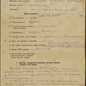 Затем Елизавета Александровна уже в должности старшего сержанта была направлена санинструктором в 31-ю армию. В полку ее уважали за смелость, находчивость, бесстрашие. А командир все равно называл бойца... дочкой.