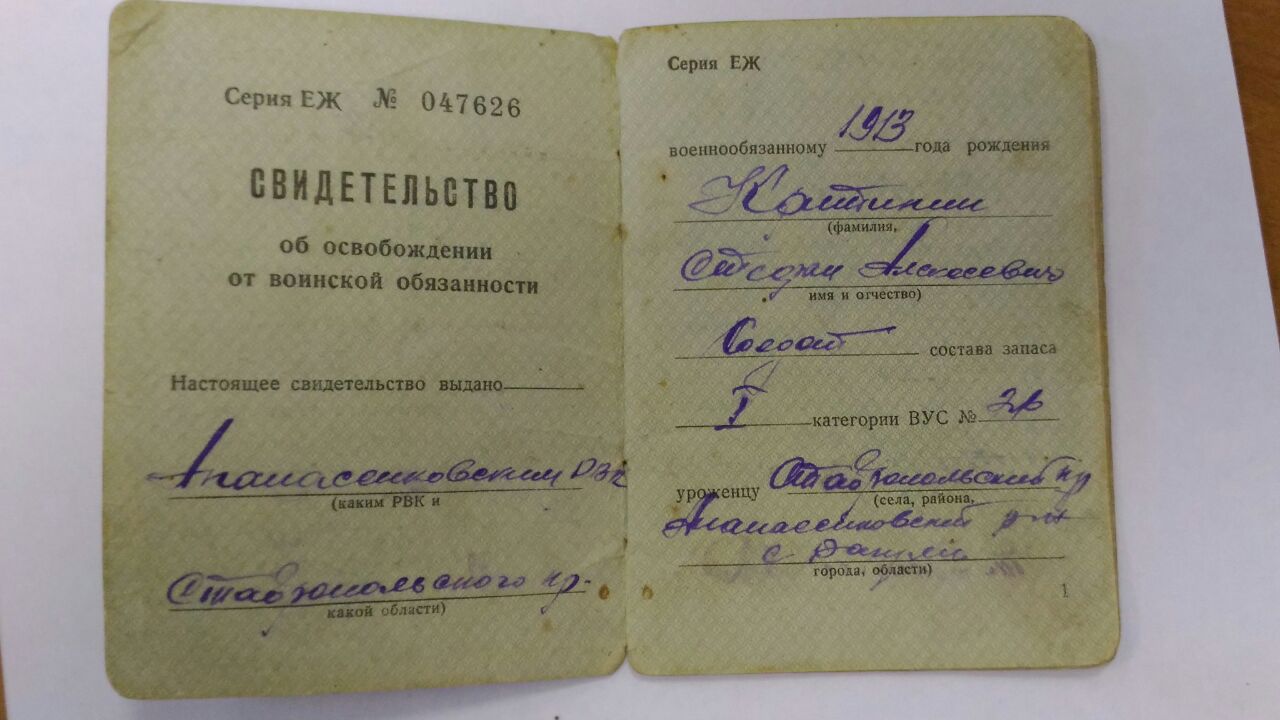 Место призыва (военкомат):Апанасенковский Райвоенкомат