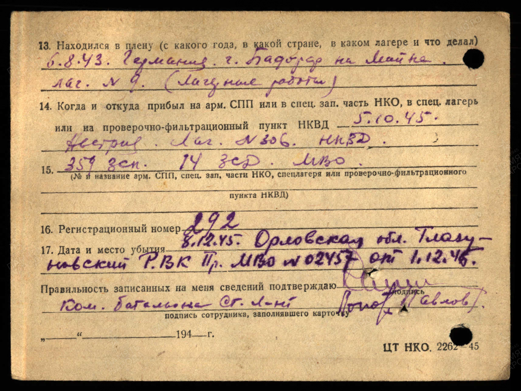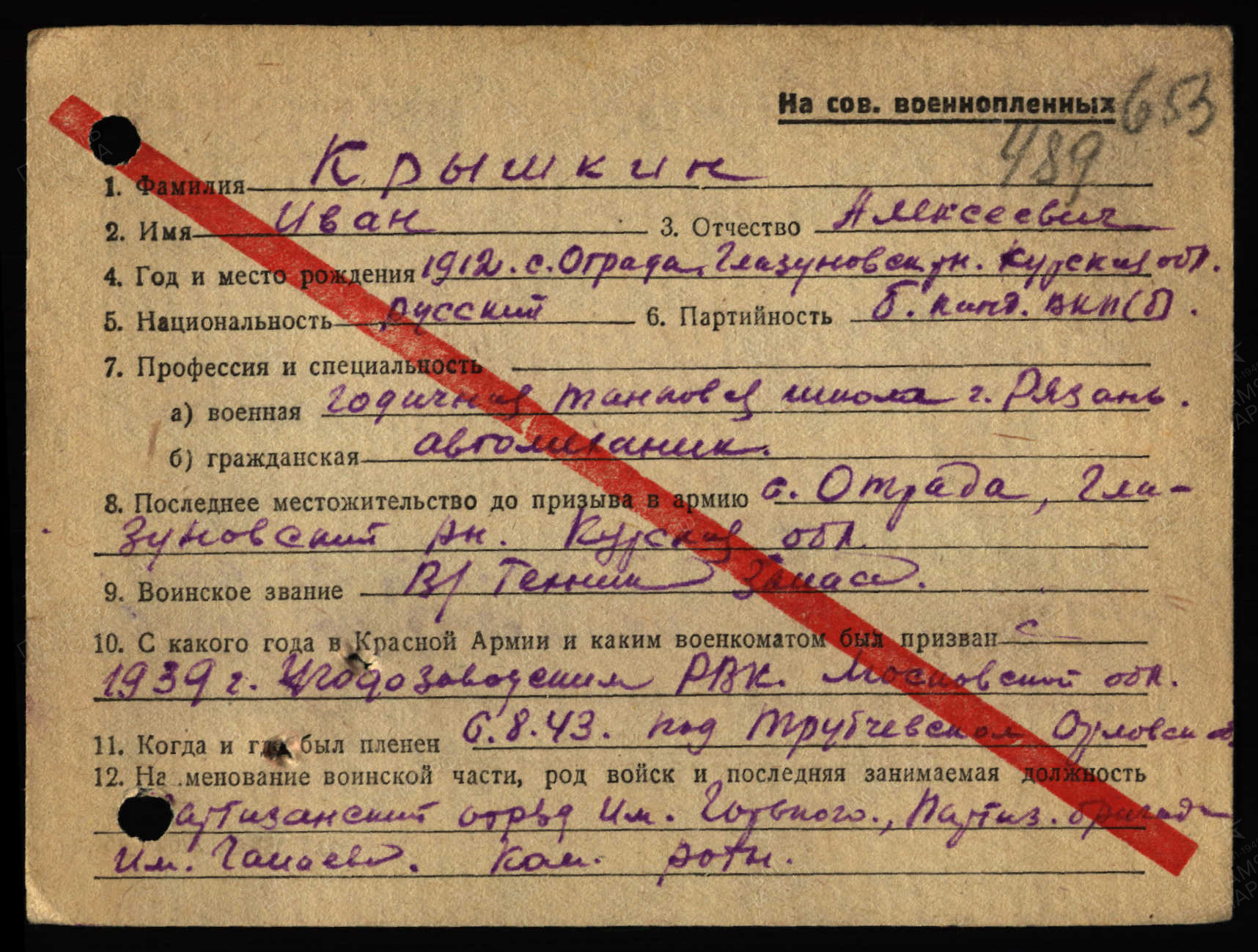 06 августа 1943г. попал в плен под Трубчевском Бежал.