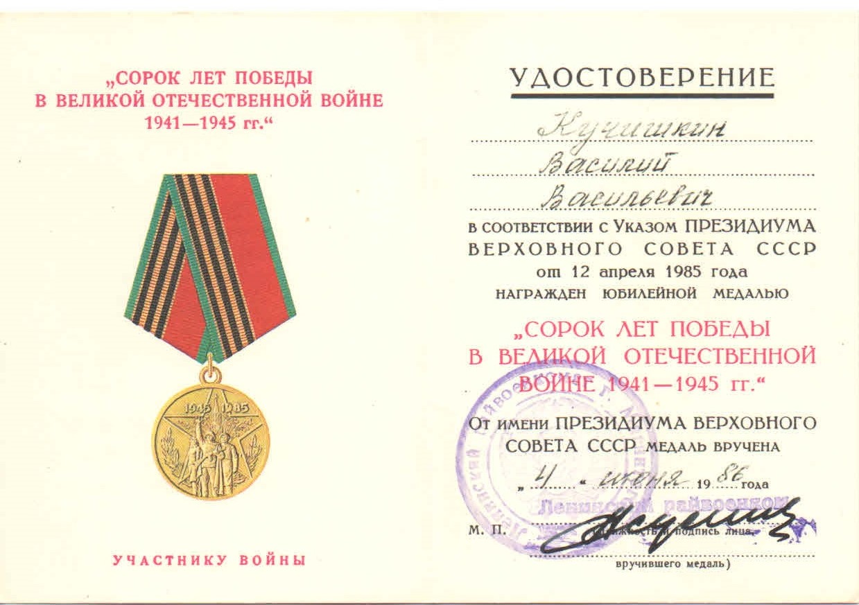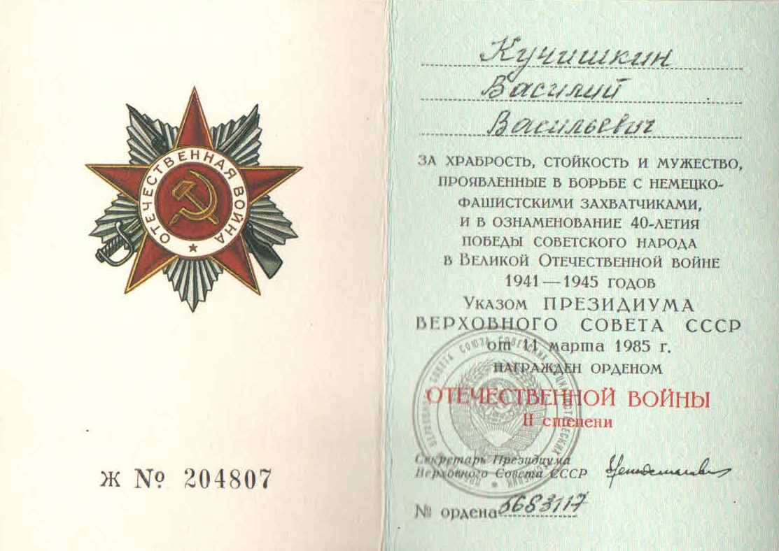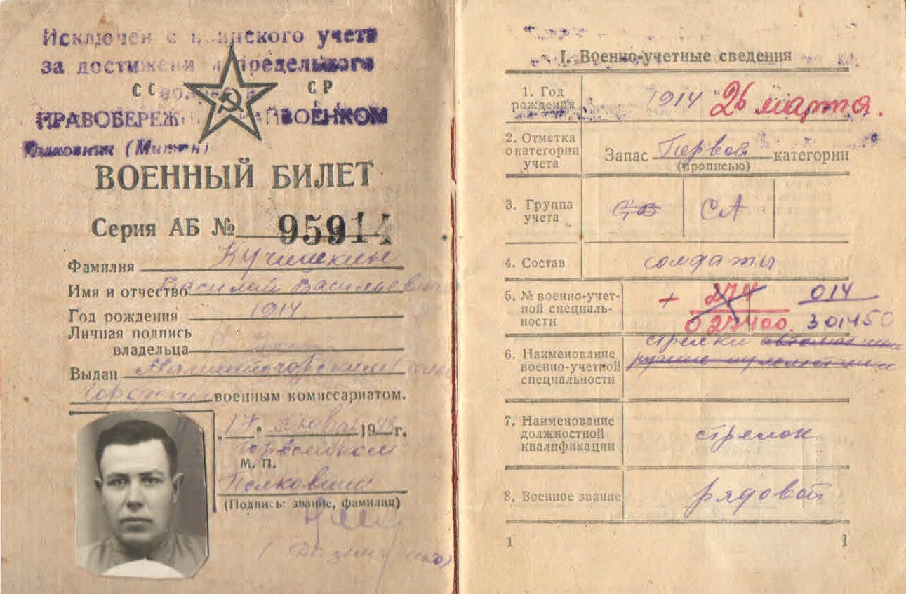 Призван по мобилизации Башмаковским РВК 21.06.1941 года. Воевал в 50 стрелковом полку в 15 гвардейской стрелковой дивизии. Автоматчик.