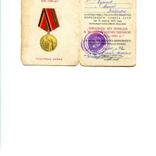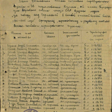 Медаль вручена 06.11.1945г. (номер наградного документа Б № 0196831)
