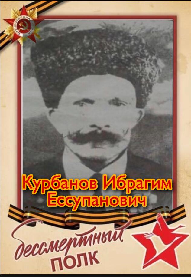 Курбанов Ибрагим Ессупанович (1900 – 1983гг.) родился 25 декабря 1900 года в с. Харбук Дахадаевского района респ. Дагестан.Добровольно ушел на фронт в 1939 году в г. Брест в 90й мотострелковый полк. Он участвовал в освобождении Западной Белоруссии и Украины. 10 марта 1940 года в войне с Финляндией был ранен в ногу. 6 месяцев он пролежал в госпитале в г. Выборге. Как только он смог встать на ноги, отправился в 120 полк г. Смоленска.