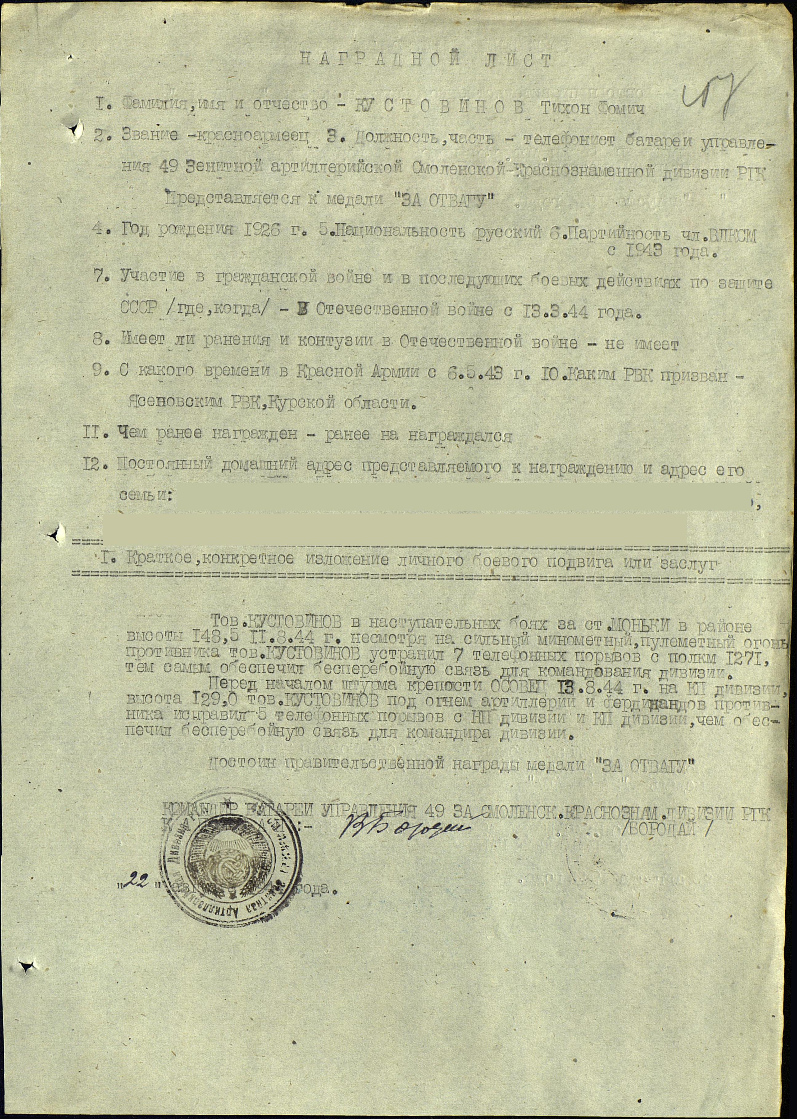 Место рождения: Курская обл., Ясеновский р-н, с. Кулевка