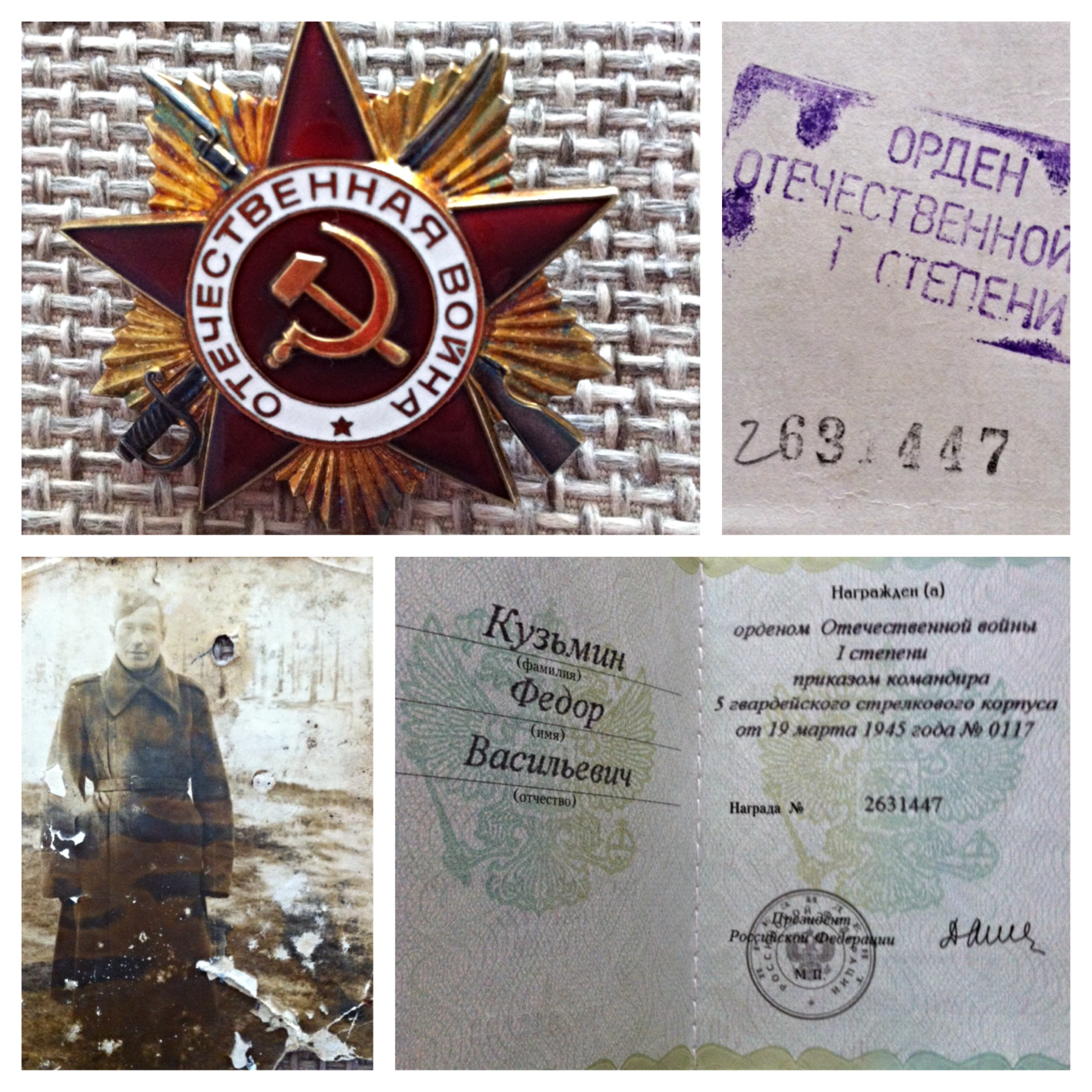 приказом командира 5 гв. стрелкового корпуса № 0117 награжден орденом