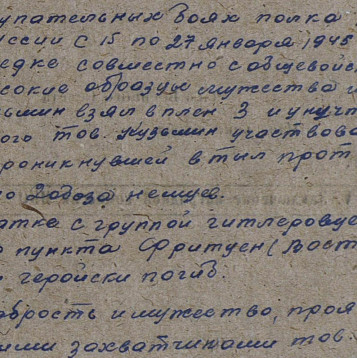 задачу, обеспечив непрерывное наступление Красной Армии к стенам г. Кенигсберг. 27 января 1945 г. при очередном выполнении боевого