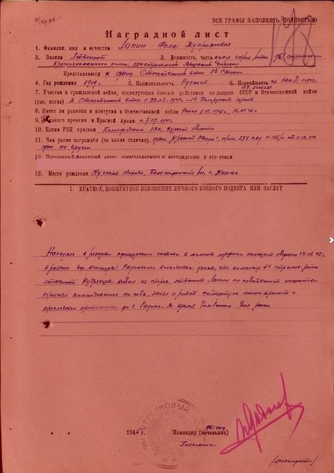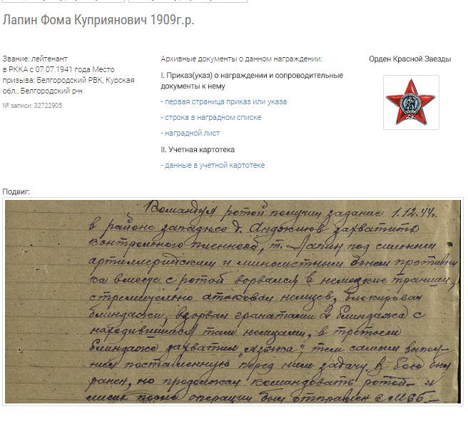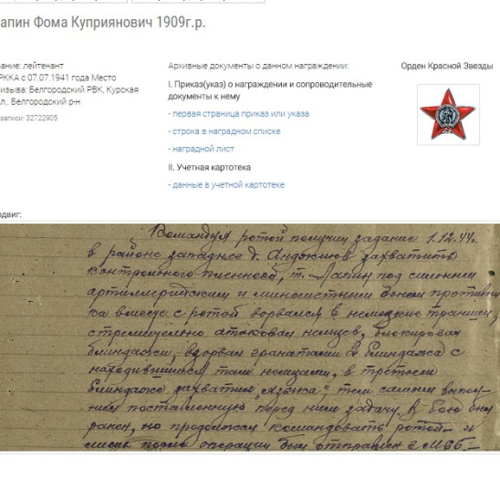 1944г. и 16.01-1945 года. Воевал на 1 Белорусском фронте, командиром стрелковой
