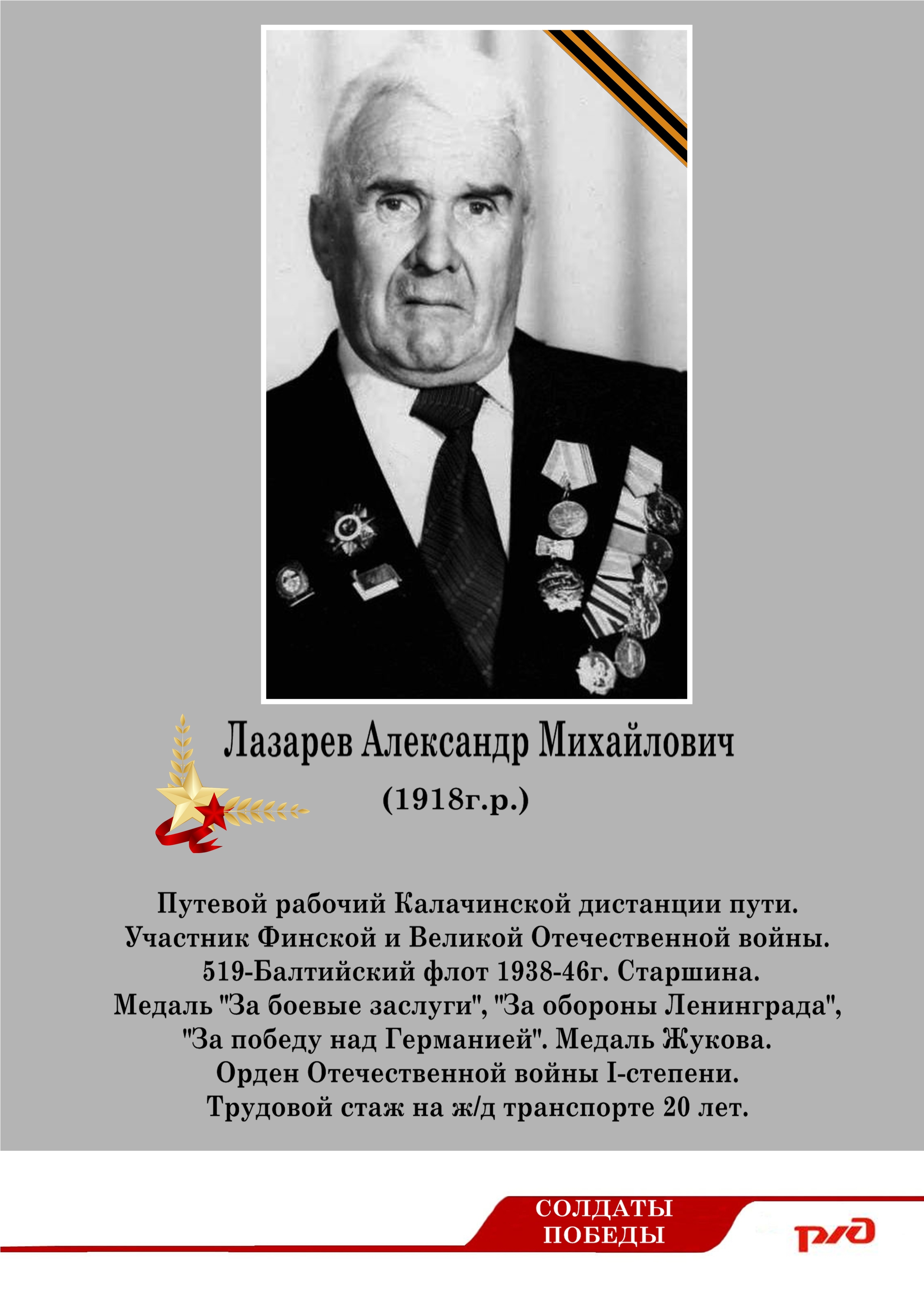 ЛАЗАРЕВ АЛЕКСАНДР МИХАЙЛОВИЧ –(1918г.р.) Участник Великой Отечественной