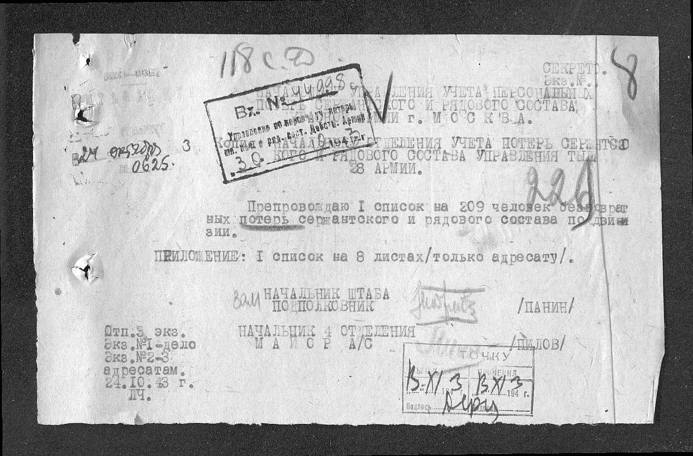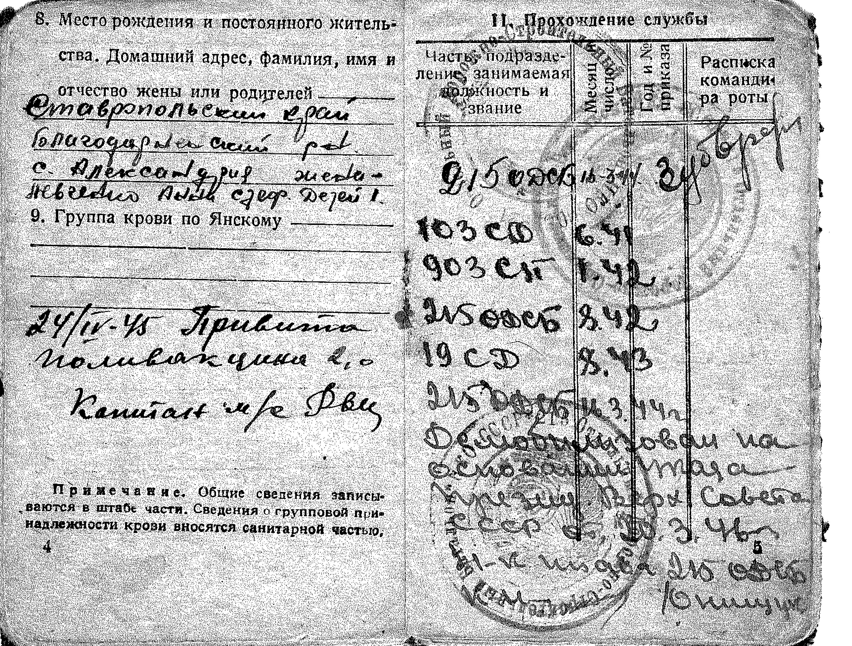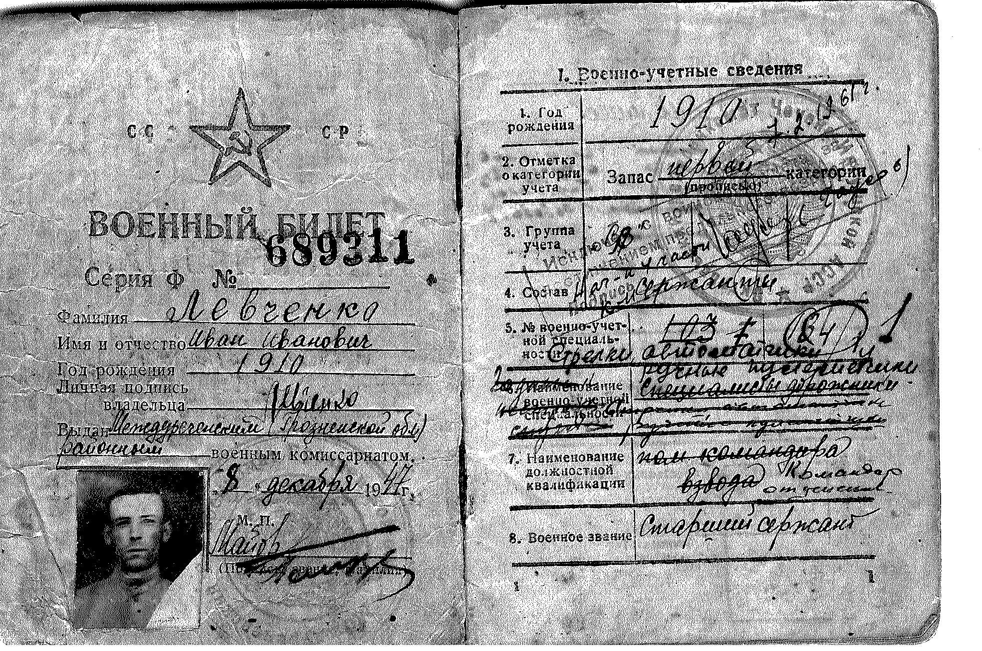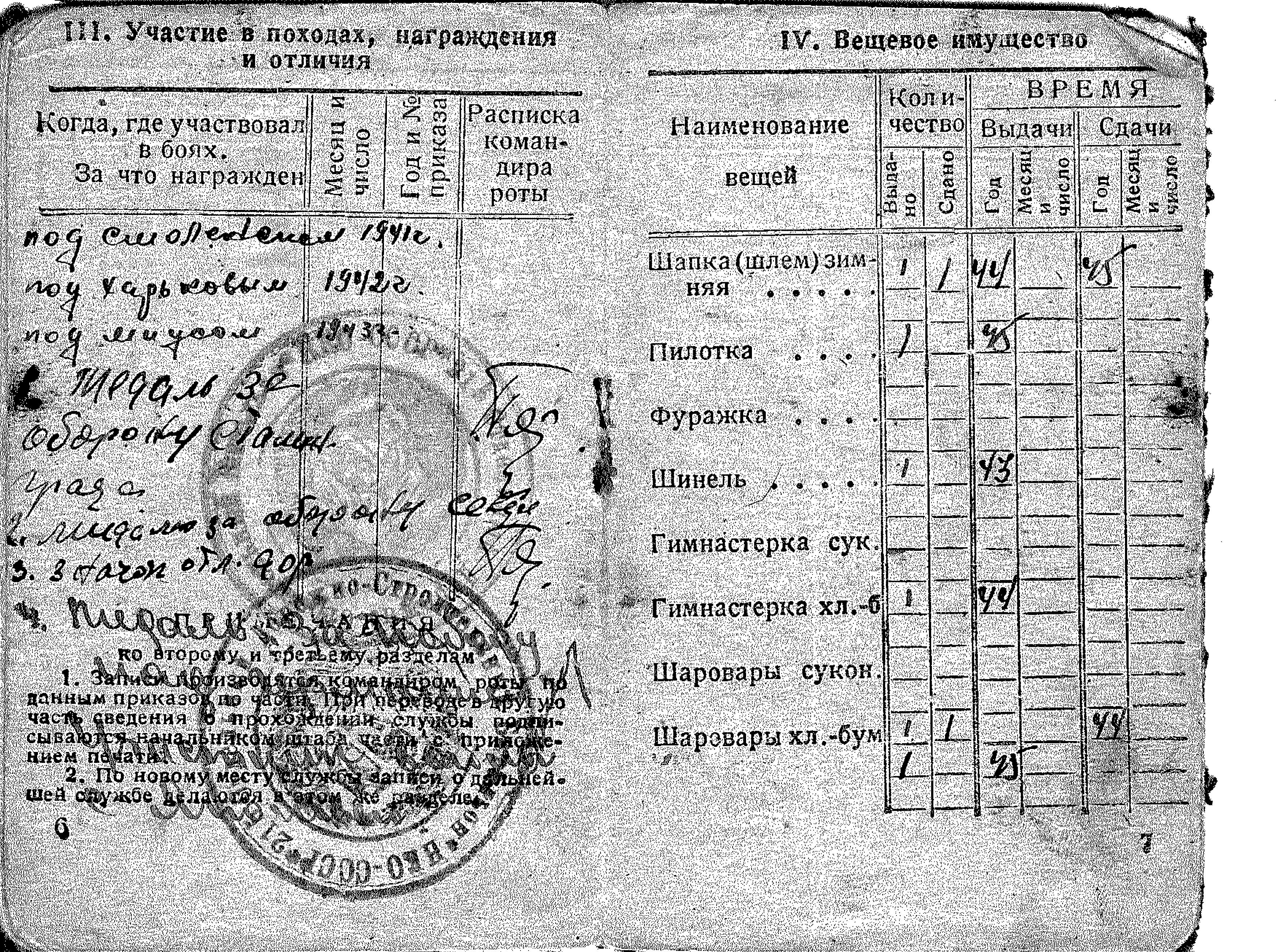 ходе боев за Ельню отец получил ранение правой ноги и отправлен госпиталь №2040.Со слов отца, бои за Ельню самые страшное время за всю войну.В феврале 1942 года отец был зачислен в 903 СП 242 стрелковой дивизии 2-го формирования, которая согласно Директивы Ставки ВГК №170220 от 05.04.1942г.включена в резерв ВГК и направлена в Сталинград, но в мае 1942 г. вошла в состав 38 Армии и принимала участие в Харьковской операции в районе города Волчанска. В августе 1942 года отца зачисляют в 215 отдельный дорожно- строительный батальон и он принимает участие в Сталинградской битве. В августе 1943 г. отца зачисляют398 СП 118 СД, входившая в 28 Армию Южного фронта, и принимает участие в Миусской и Мелитопольской операциях.1октября 1943 г.отец получил ранение руки и включен в списки потерь личного состава как убитый в районе с. Зеленый Луг. Октябрь-ноябрь 1943 г. находился в госпитале №2343. 118 стрелковая дивизия стала именоваться 118 Мелитопольская Краснознаменная ордена Кутузова стрелковая дивизия. В марте1944 года отец вновь зачислен в 215 ОДСБ, который 6 октября 1944г. включен в состав 14 Армии Карельского фронта, и принимал участие в Петсамо-Киркенесская наступательной операции. Участие