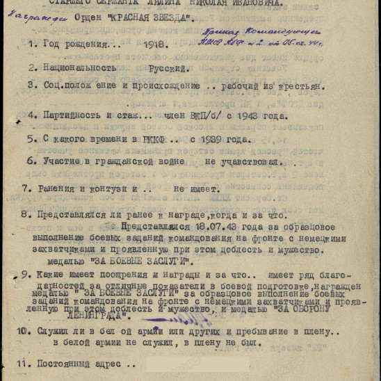 10.10.1938 был призван на срочную службу в армию. С первых дней начала войны находился в строю, прошел всю войну имеет награды. Окончил службу в 1956 году.