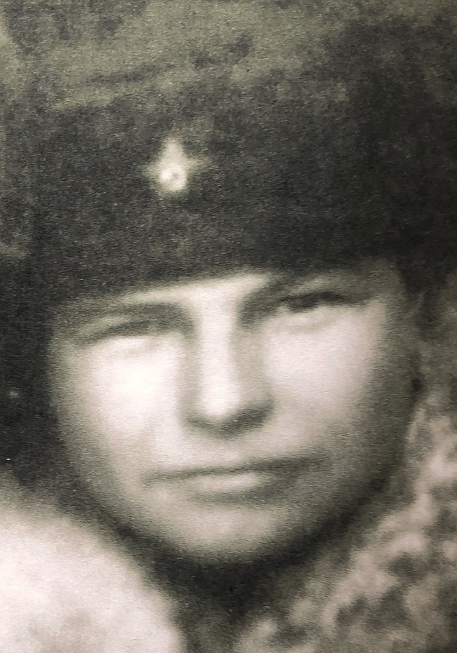 Ушел на фронт в 18 лет в феврале 1942 года. Был награжден медалями за отвагу, Орденом Славы lll степени, медалью за победу над Германией в ВОВ 1941-1045 гг., Орденом Отечественной войны 1 степени. Был ранен 5 февраля 1945 г. в обе ноги. Полз в лесу сутки, потом санитарный эшелон. 13 февраля попал в госпиталь 1721. 19 планировали ампутацию левой ноги, голень была раздроблена, у правой перебита коленная чашечка. Врач женщина спасла ему ногу, сложила осколки кости. Долго лечился. Вернулся в родное село, женился. В 1951 году направили в Узбекистан. Построил дом. Там родились 2 дочери. Был членом партии. Его уважали и ценили.