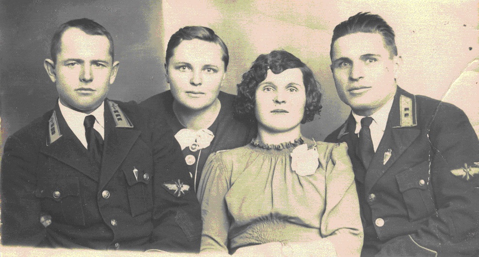 Фото 1 (слева направо: Геннадий Локтев, Мария Локтева, неизвестные мне женщина и мужчина). Подпись на обороте: "На память сестре Гале от Геннадия, Маруси и их товарищей по работе. Снимок сделан в январе 1940 года. Привет тебе, родная сестра".