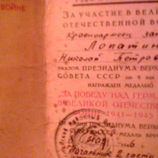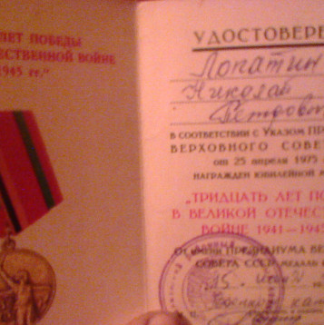 Воевали и 2 его младших брата: Лопатин Виктор Петрович (1925 гр) на Белорусском фронте и Лопатин Дмитрий Петрович (1927 гр) в Русско-Японской войне. Тоже получили увечья.