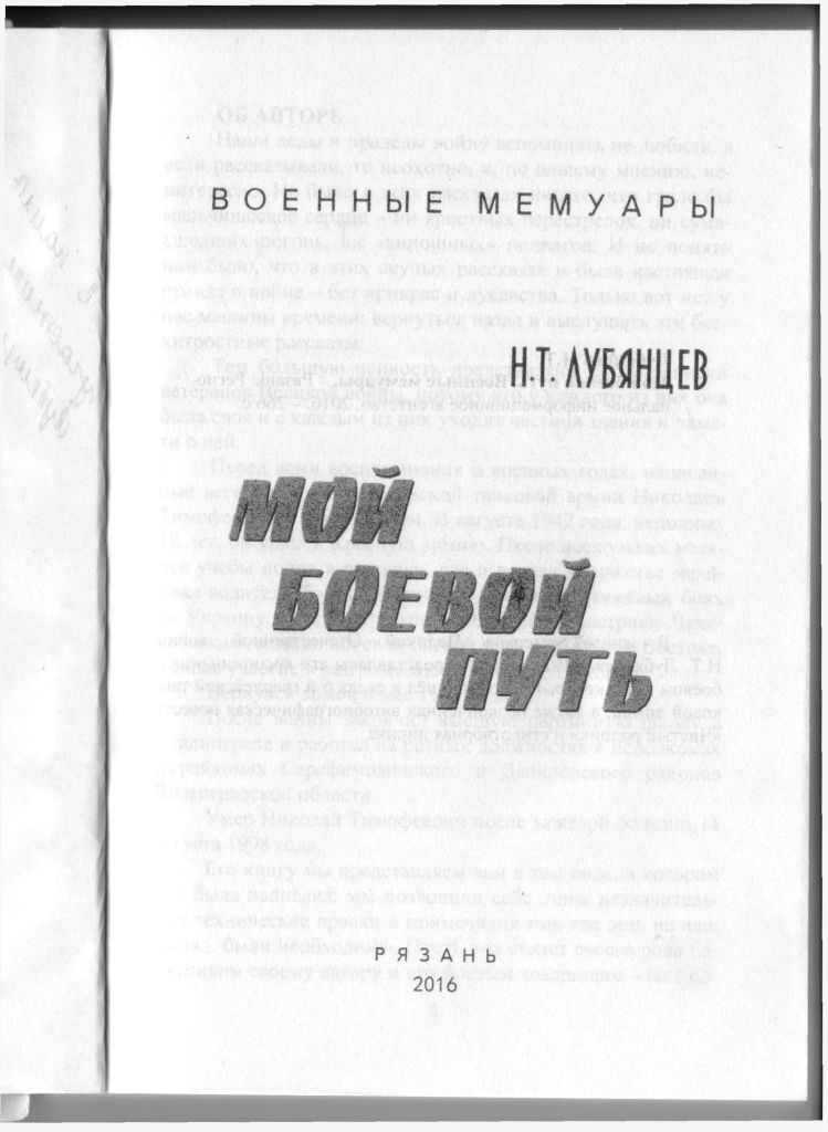 P.S: Лубянцев Николай Тимофеевич один из немногих, кто оставил потомкам свои солдатские мемуары о той великой войне… В