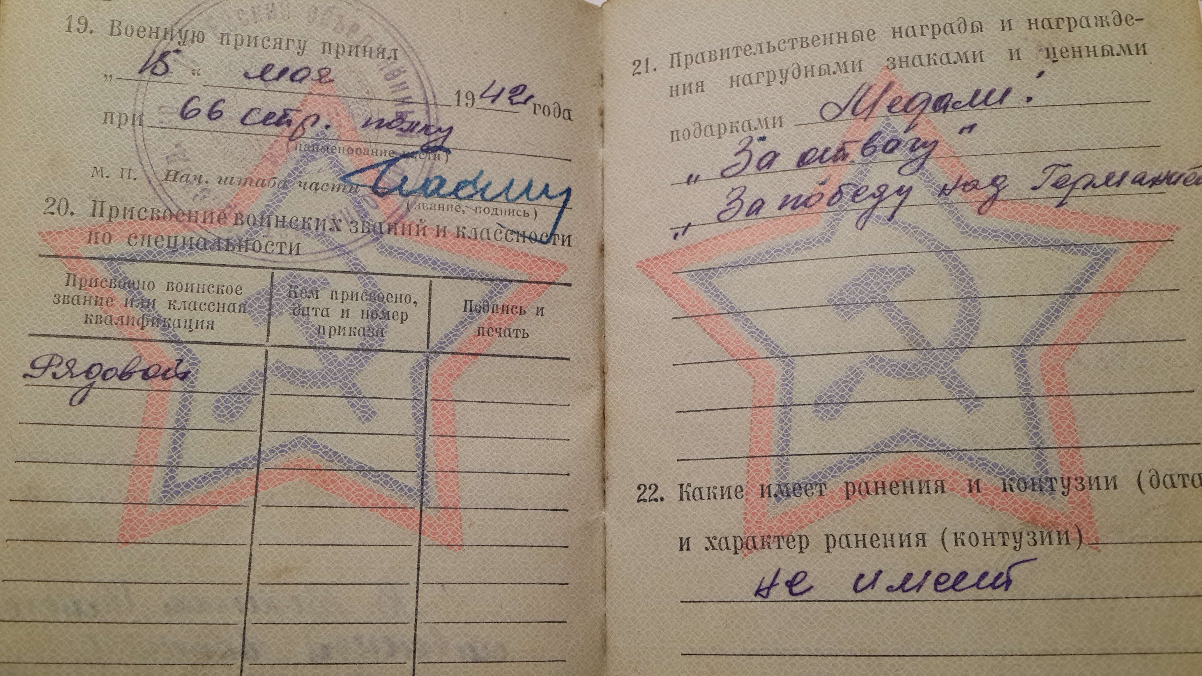 На войну пошел в 21 год, призвался военкоматом Батайского района Ростовской области в октябре 1941 года, прошел всю войну. Победу встретил в Берлине. Участвовал в боях, и в боевых походах. Был стрелком в 188 Стрелковом полку, после ранения, продолжил службу в 66 Стрелковом полку, 64 дорожно-восстановительном отряде,32 механизированной бригаде-автоматчиком, был контужен,закончил войну в 38 механизированном полку в мае 1946 года