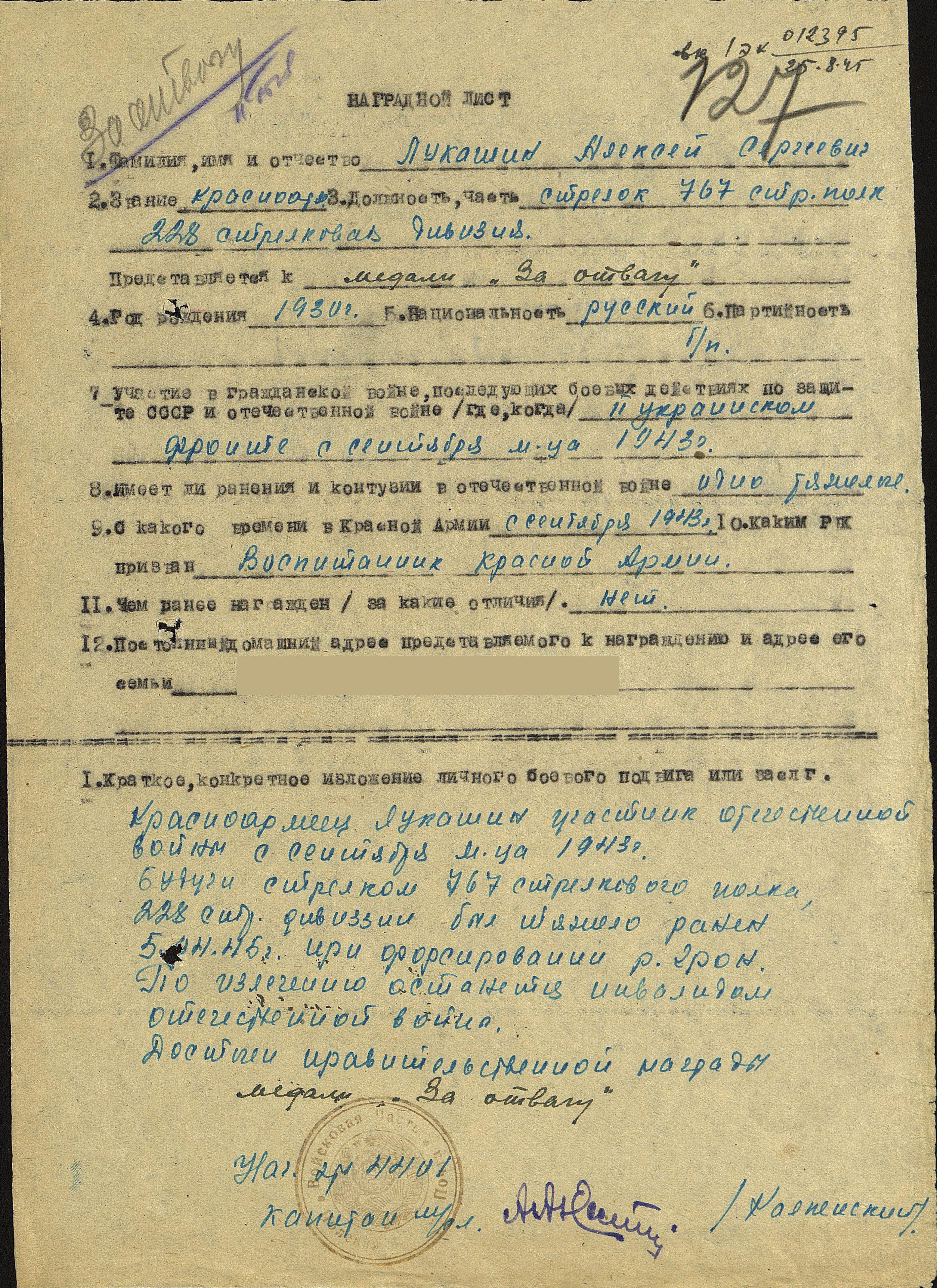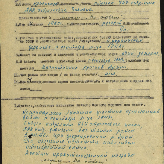 Мой папа жил в пос. Переделкино Московской области. Недалеко находится железная дорога Киевского направления. Осенью 1943 года папа тайком пробрался в эшелон идущий на фронт и уехал защищать Родину. Было ему тринадцать лет. Попал он на Второй Украинский фронт. Воевал в пехоте, был стрелком 767 стрелкового полка. 5 апреля 1945 года при форсировании реки Грон был тяжело ранен в обе ноги. Папа был замечательнейшим и светлейшим человеком. Вечная память ему и всем кто защищал Родину.