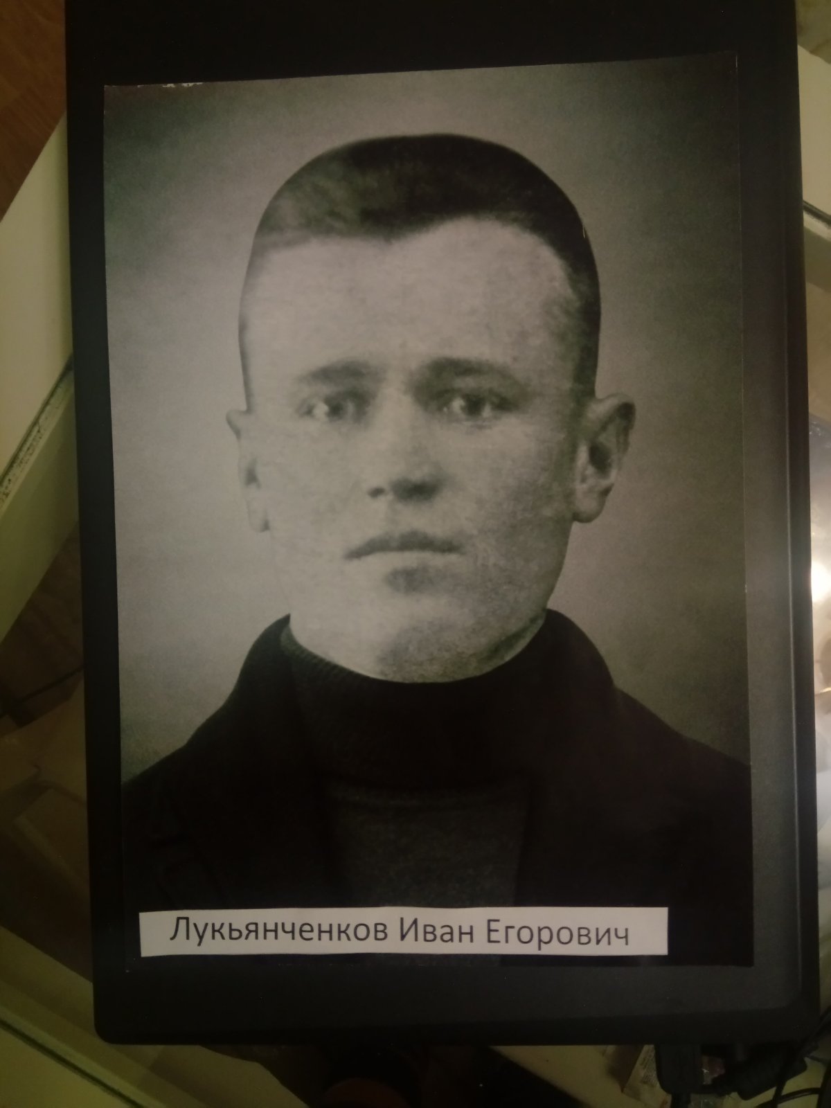 Боевой путь ветерана Лукьянченков Иван Егорович. 18 августа 1913года.Призван в ряды РККА Енакиевским военкоматом Сталинской области. Пропал безвести .Участвовал в Советско- финляндской войне, в Хасан-боях. Был ранен, восстанавливался в госпитале. Сохранилось письмо, в котором есть обратный адрес: Полевая станция номер 456, с-н 576, литер 5-3 д 3 м-р. Думаем, что погиб под Ленинградом. Помним, любим, скорбим.