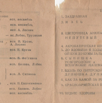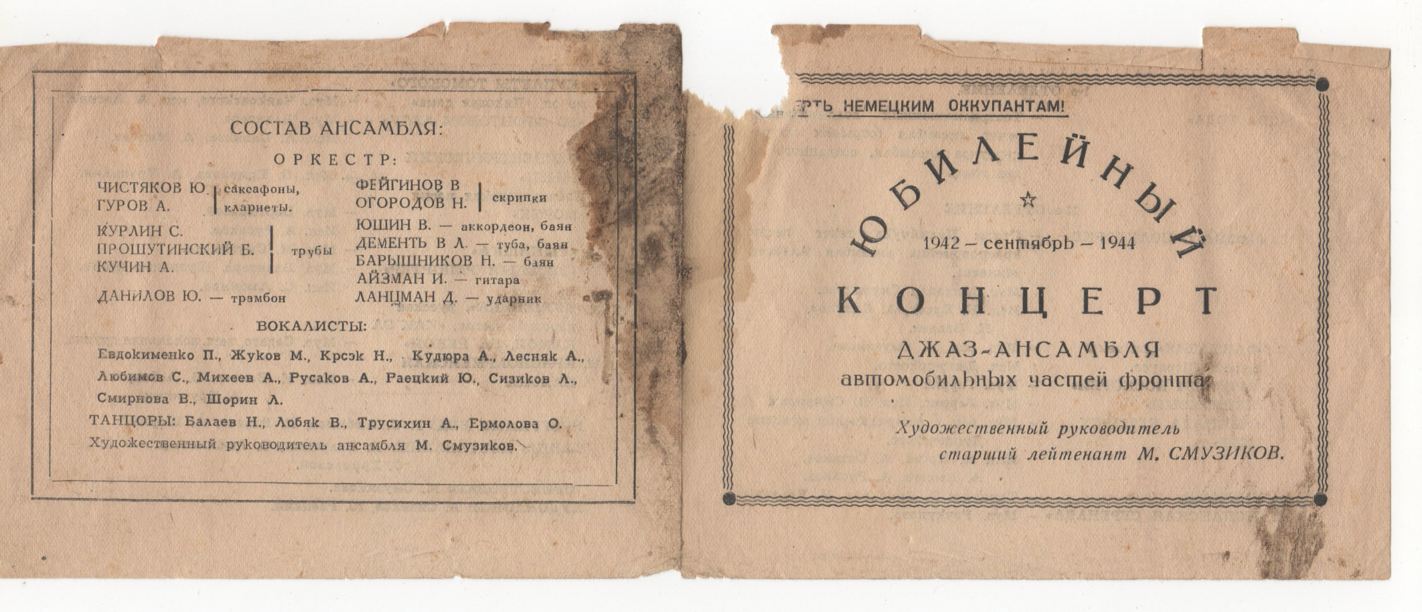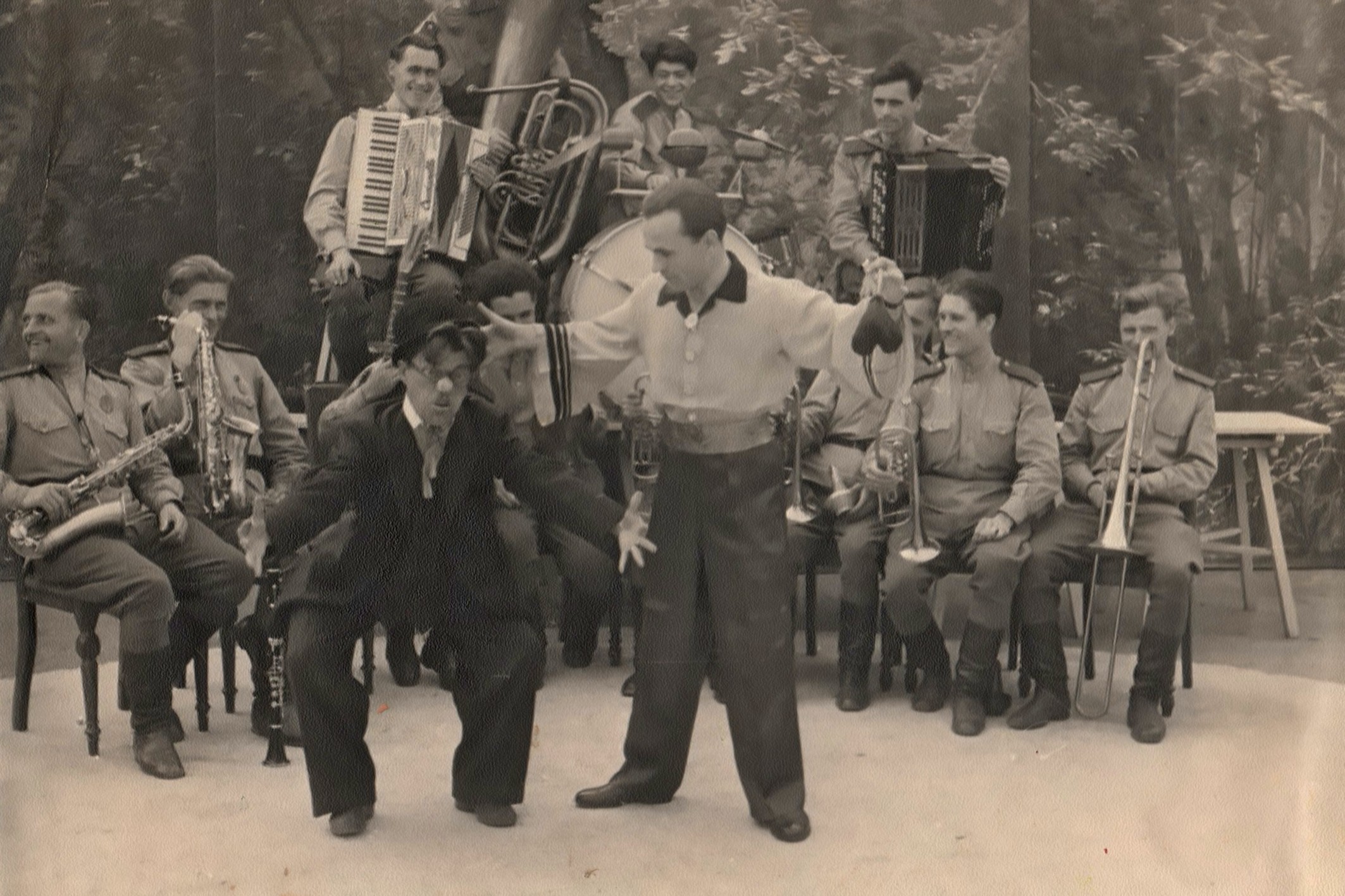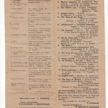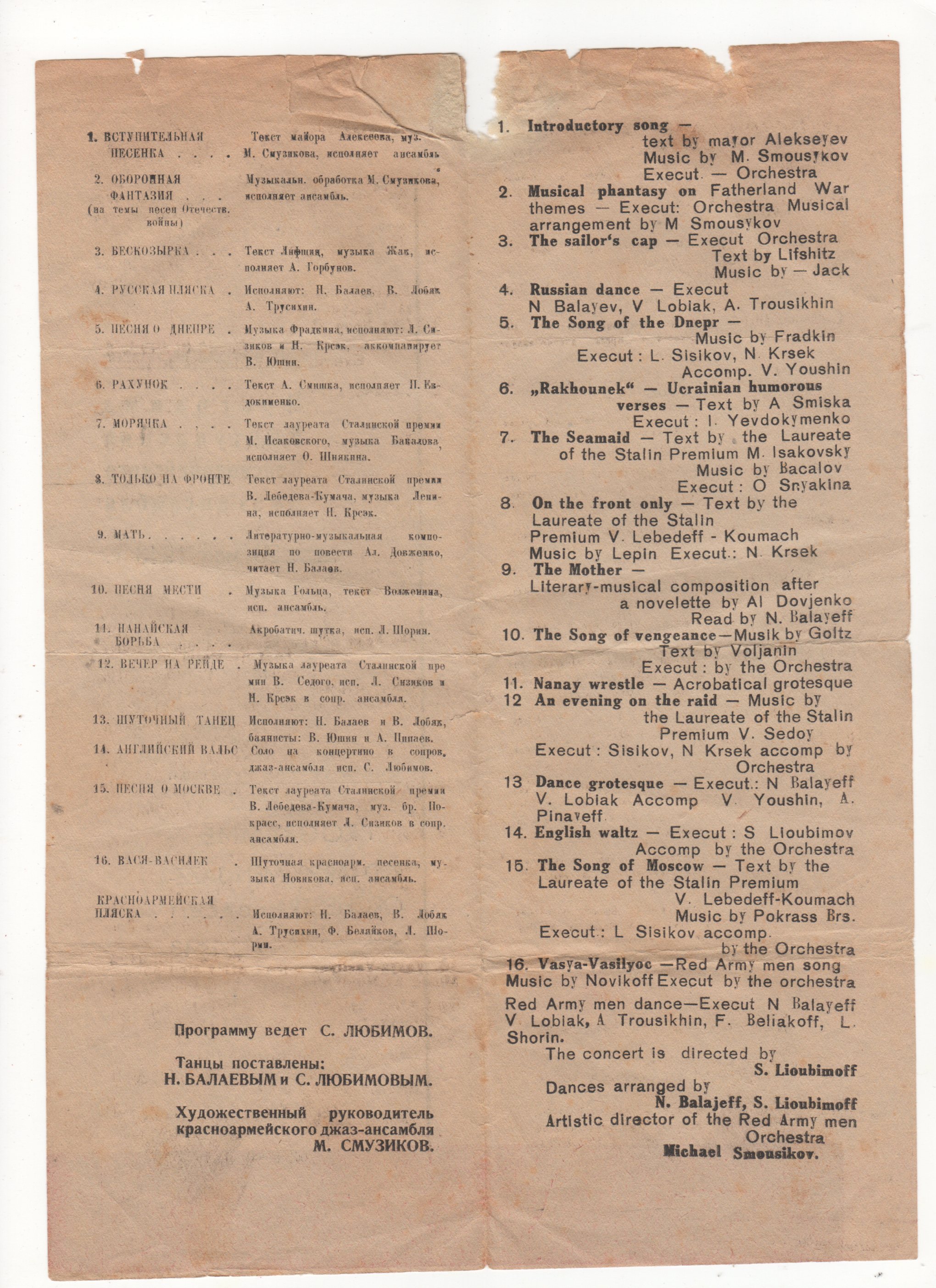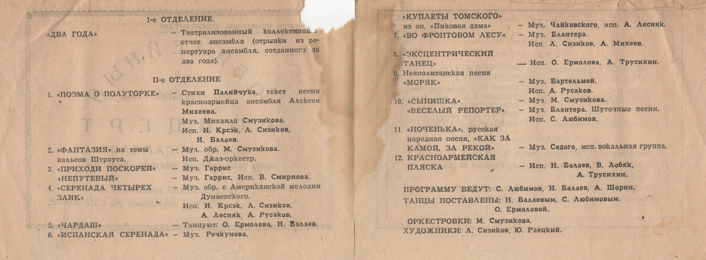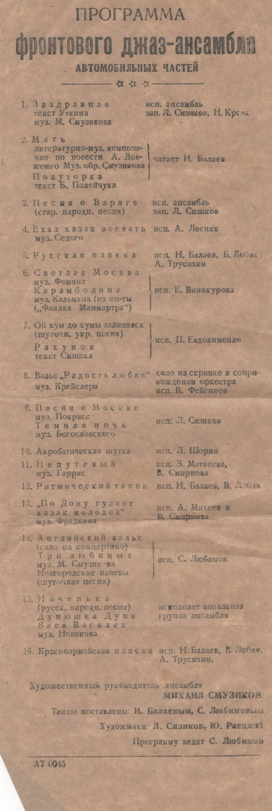 Любимов С.В.-любиминейший актёр бойцов.В блиндажах,землянках дал 200 концертов.Его шуточные песни поднимают боевой дух бойцов и командиров.Автор песен "2 катюши" и другие.Представлен к награде "За отвагу".( из наградного листа.)После войны работал клоуном в Московском ГосЦирке. Снимался в фильме "Косолапый друг","Старик Хотабыч".