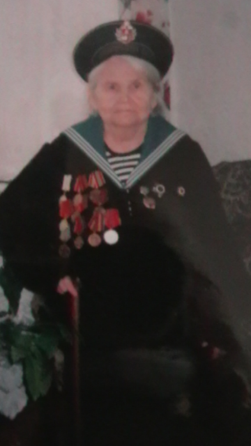 , командир отделения морской пехоты всю войну она защищала Ленинград. Сначала она воевала на батарее305 получила ранение и контузию . Лежала в госпитале на Васильевском острове.После госпиталя её направили на камбуз .Демобилизовалась 25 ноября 45 года.Прожила 82 года. Мы помним , мы гордимся моей мамой.Награждена медалями "За отвагу " За боевые заслуги " За оборону Ленинграда " За победу над Германией " Орден Отечественной Войны .