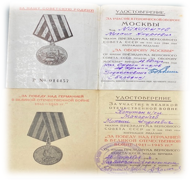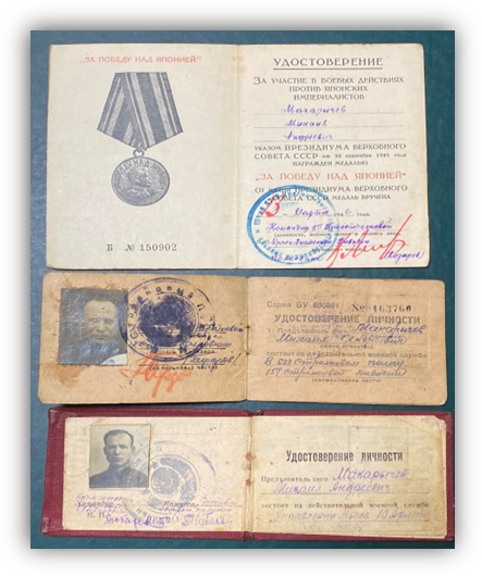 Ушел на фронт в октябре 1941 года. Служил в звании капитан в штабе Армии первого Белорусского фронта, в 1137 стрелковом полку 339 стрелковой дивизии, в составе 33 Армии, 15 отдельном разведывательном батальоне 57 мотострелковой Краснознаменной дивизии. Прошел свой боевой путь от Тулы до Вислы. Освобождал города: Калугу, Мещёвск, Могилев, Минск, Киров, Варшаву, Лодзь, Пяски, Майданек. Форсировал реки: Днепр, Буг, Десну, Тиссу, Вислу. Воевал Михаил Андреевич заместителем командира полка. В 1942 году, после немецкой бомбёжки он был завален в траншее землей. Из-под земли был виден только один сапог и только благодаря этому, его нашли и откапали солдаты. Михаила Андреевича в связи с тяжелой контузией отправили в полковой госпиталь, а затем в тыл. Не смотря на ранения, Михаил Андреевич вновь встал в ряды защитников нашей Родины. Затем был вторично ранен. Направлен в военную академию. После учебы попал на русско-японский фронт. Вернулся домой в июне 1945. За время отечественной войны с японскими захватчиками отдал все силы для обеспечения личного состава питанием и всем необходимым для жизни и боя тем самым дал возможность выполнить боевую задачу подразделениям. В самую трудную минуту выехал сам лично к подразделениям и в отсутствии командира батальона взял на себя командование батальона и привёл личный состав первым из армии в город Мукден. За что был награжден Орденом "Красная Звезда". В послевоенные годы работал заместителем начальника по тылу в Ульяновском гвардейском высшем танковом командном, дважды Краснознамённом, ордена Красной Звезды училище имени В. И. Ленина. В дальнейшем продолжил свой трудовой путь на Ульяновском автомобильном заводе имени В.И. Ленина.