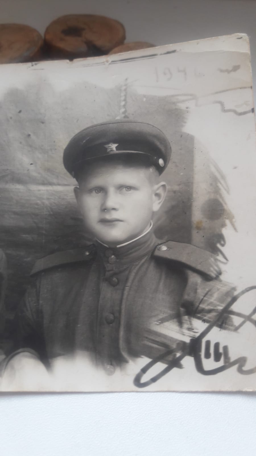 Пошел служить в 1944, получил ранение в Кёнигсберге, пришел домой в 1949 году