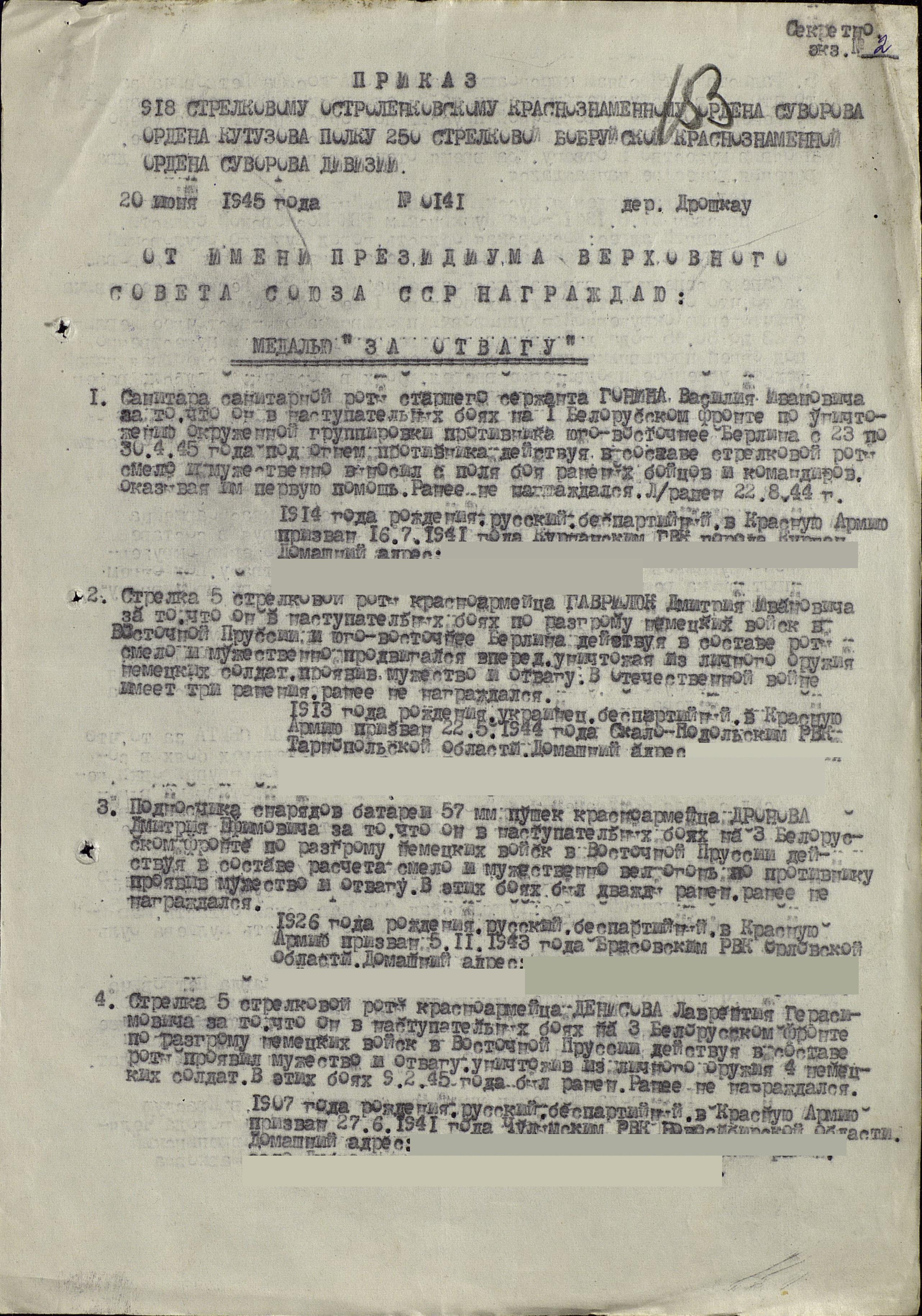 Призван в РККА в 1941 году. Служил в 918 стрелковом остроленковском краснознаменном ордена Суворова, ордена Кутузова полку 250 стрелковой Бобруйской краснознаменной ордена Суворова дивизии 6 стрелковой роте. Согласно приказа № 14 от 20.06.1945 г. был награжден медалью "За отвагу" за бой юго-восточнее Берлина и бой за овладением городом Гентин Бранденбургской провинции Германии из личного оружия уничтожил 6 немецких солдат. Имел тяжелое ранение осколком мины.