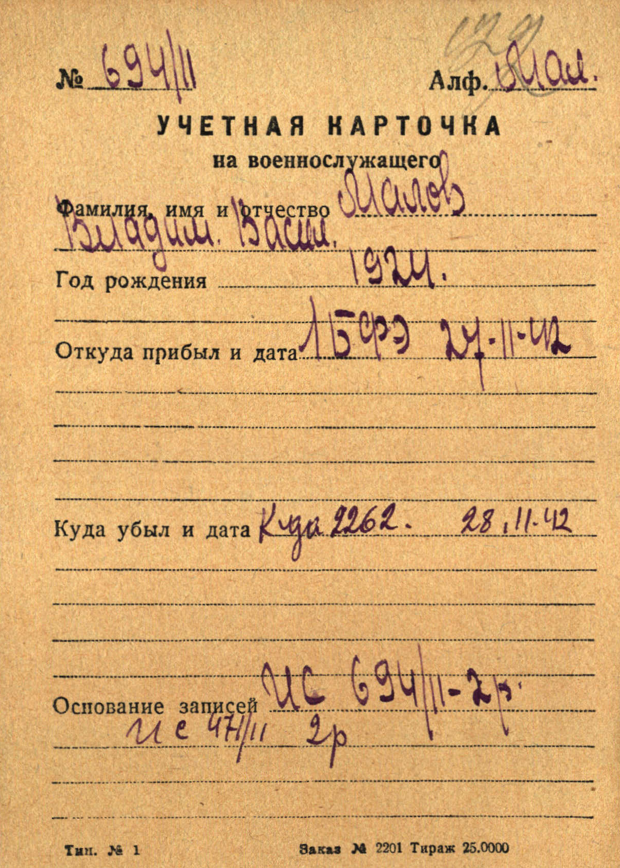 прадедушка, Малов Владимир Васильевич, родился 15 ноября 1924 года в д.