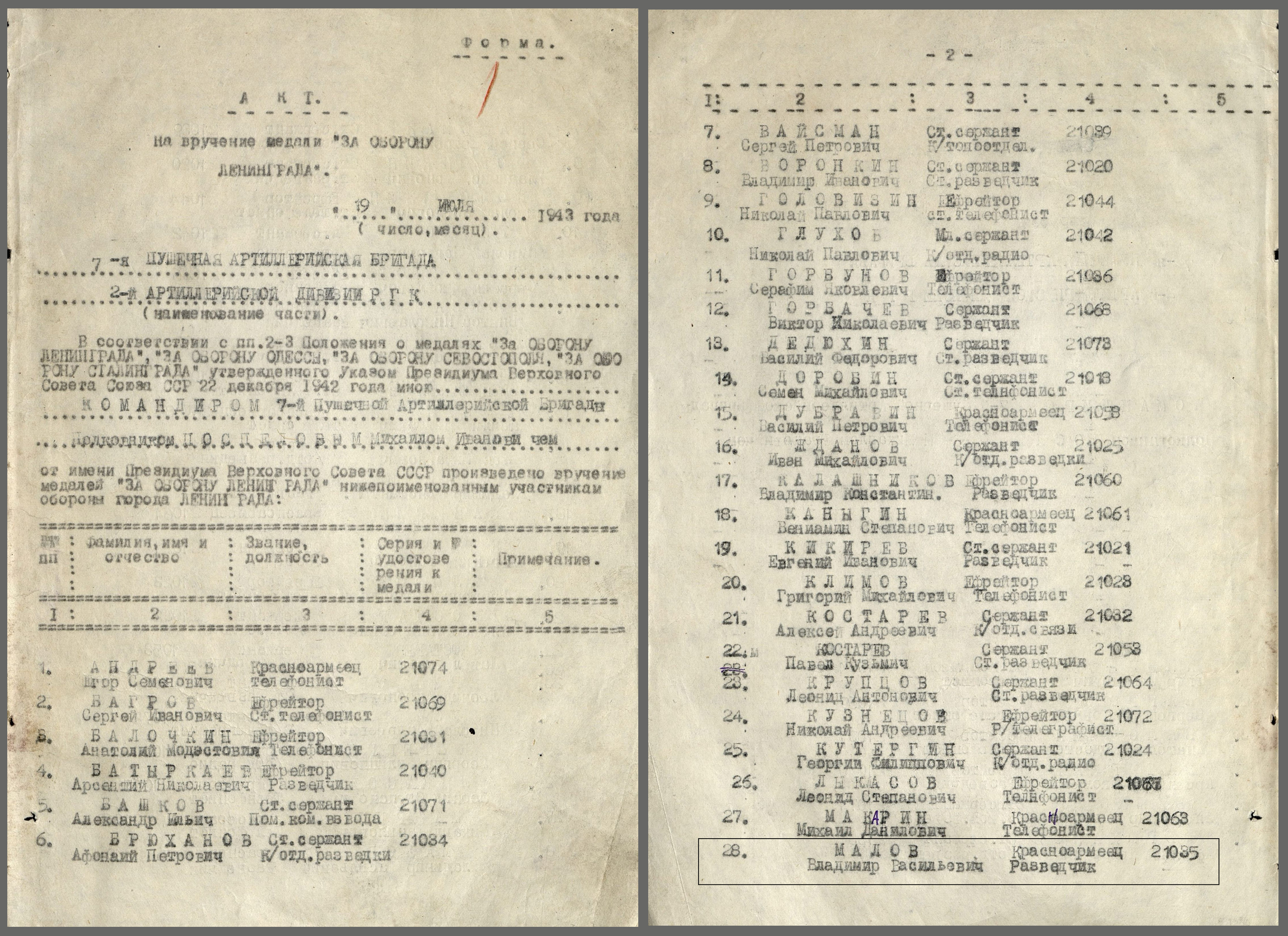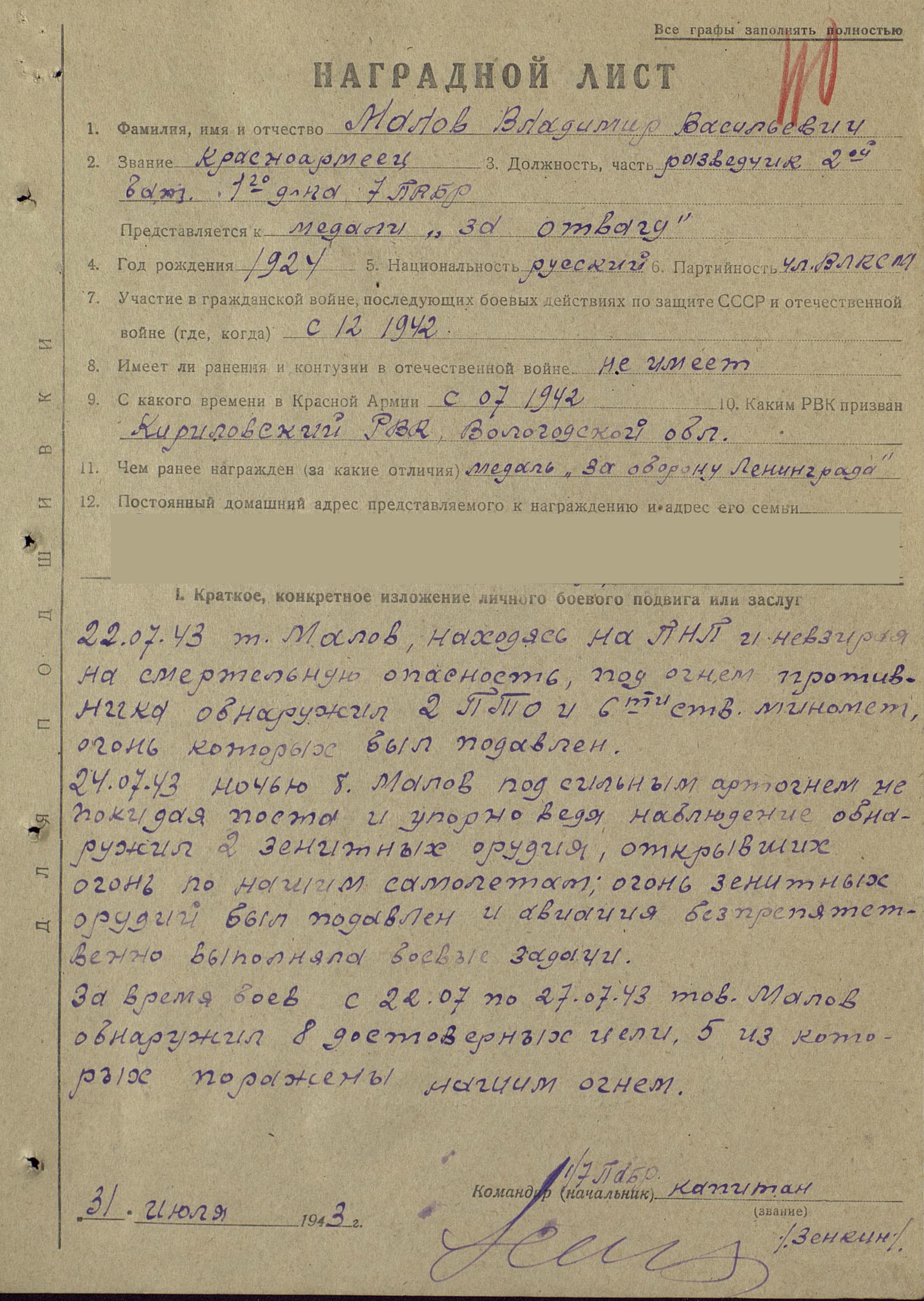 Волховский фронт. Был разведчиком-наблюдателем 7 пушечной артиллерийской