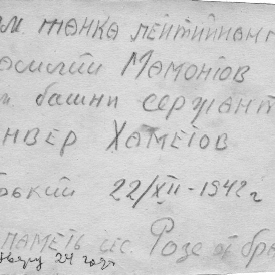 Мамонтов Василий Петрович, 04.09.1922 г. рождения, русский, член ВЛКСМ. Уроженец: РСФСР, Рязанская губерния, Скопинский уезд, Гагаринская волость, Огибаловский с/с, с. Огибалово.