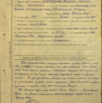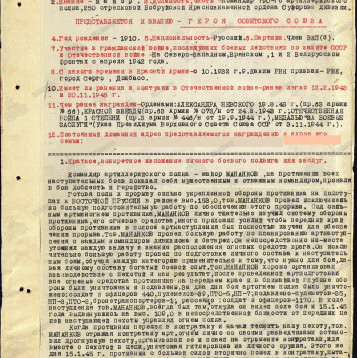 наградной лист на представление майора Мананкова Т. П. (посмертно) к званию