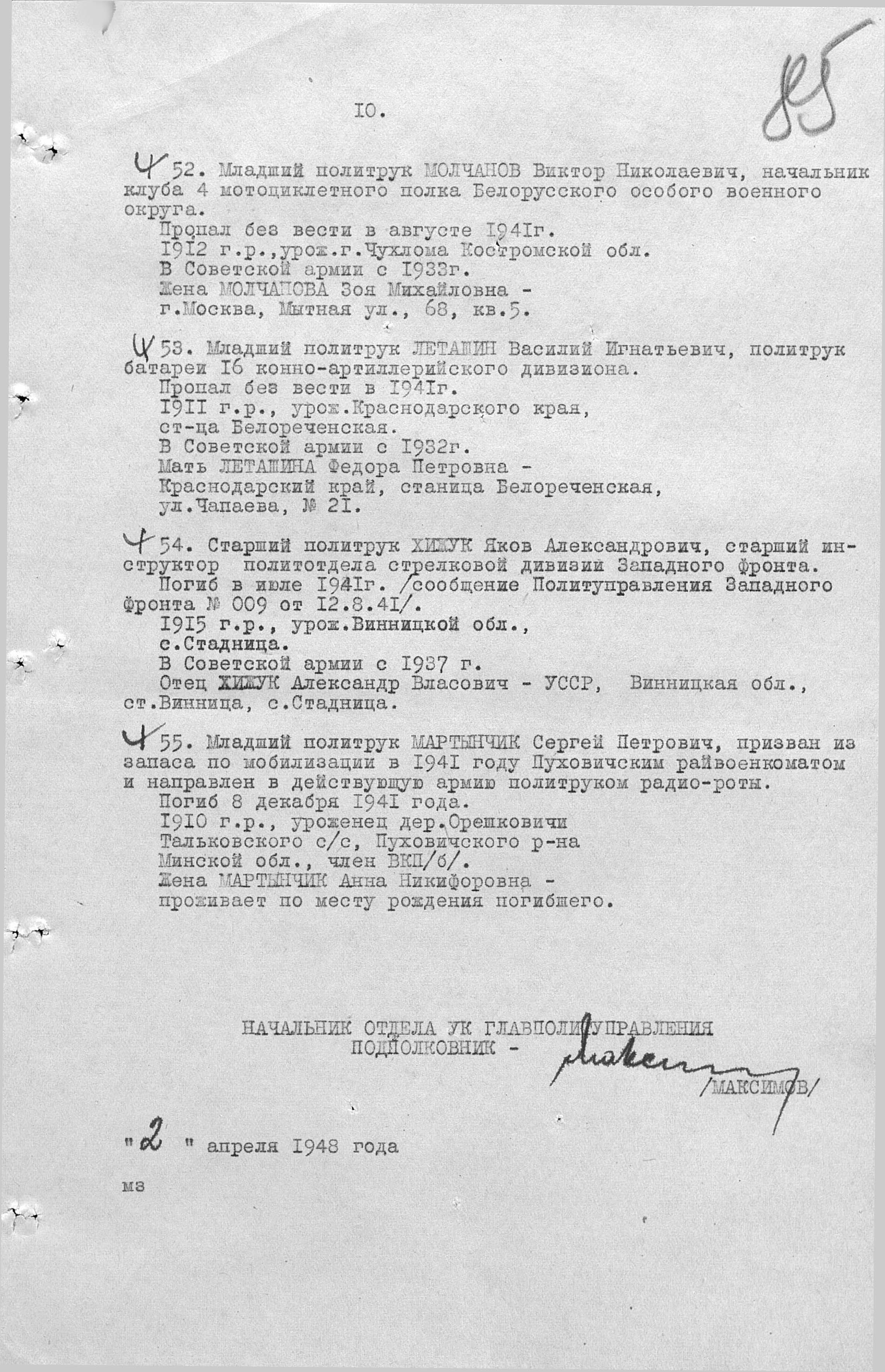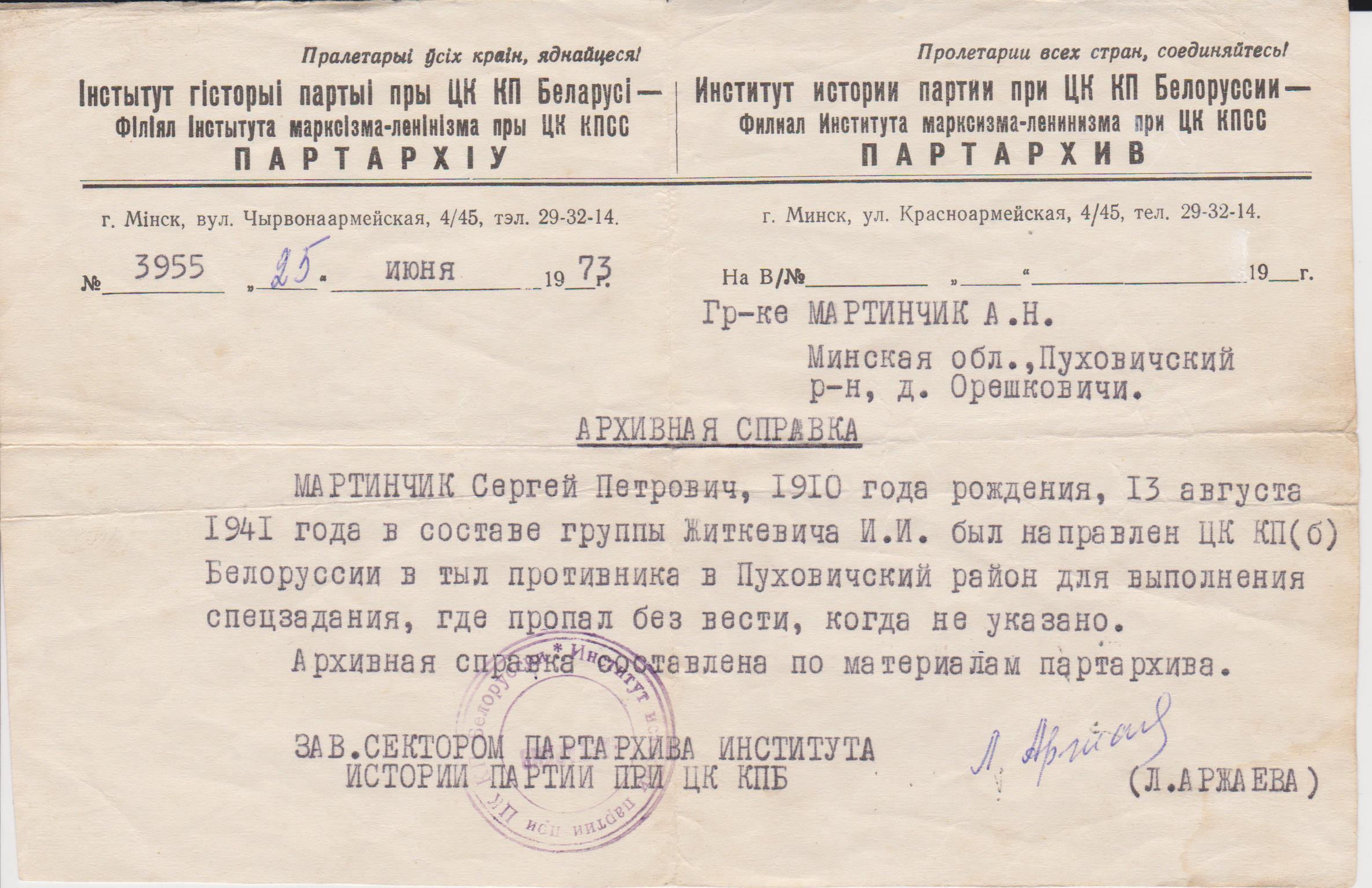 году Пуховичским райвоенкоматом и направлен в действующую армию политическим