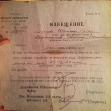 Из архивной справки ЦАМО: " В наступательных боях 23.10.1943 на с. Кривино Мартиросов М.И. смело форсировал реку, бросился в атаку, захватил ручной пулемет, и направив его в сторону немцев, уничтожил пять солдат противника. 23.10.1943 был ранен и госпитализирован". Ранение оказалось смертельным, и 24.10.1943 Михаил Иванович Мартиросов умер от ран в неизвестном госпитале/медсанбате. Приказом 1 Белорусского фронта от 13.11.1943 восстановлен во всех правах, звании и должности. Госпиталь нам до сих пор не удалось. Жена и дочери Михаила Ивановича ушли из жизни, так и не узнав, где и как погиб их муж и отец. Ведутся поиски места захоронения героя.