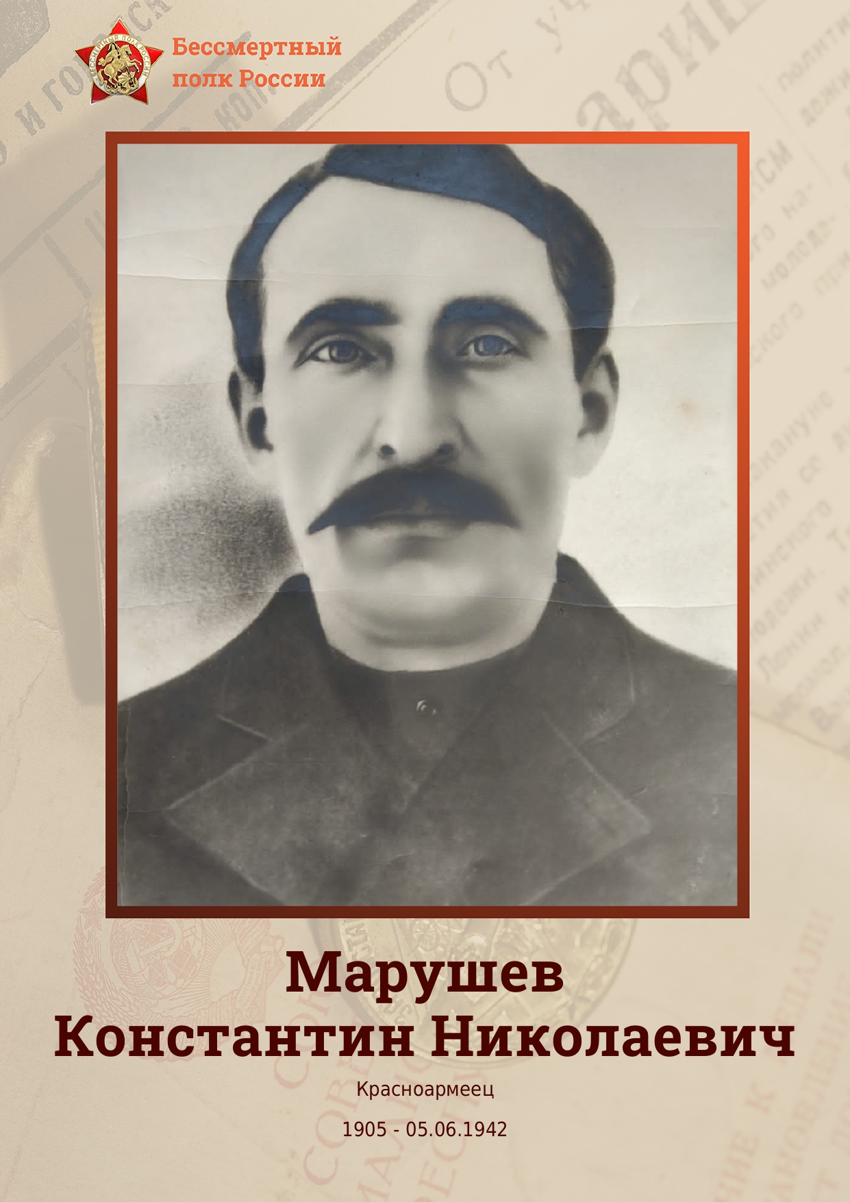В 1941 году был призван в Подмосковный 1 стрелковый полк. Располагался полк под Смоленском. В начале сентября 1941 года полк перебросили в Ленинградскую область, недалеко от Санкт - Петербурга. Именно там полк принял первый бой – 03.09.1941 года. С 8 сентября 1941 года началась блокада Ленинграда. 6 декабря 1941 года во время артобстрела города его сильно ранило в спину. Чтобы спастись он лег в воронку, которая образовалась от взрыва бомбы. По его рассказам, его спасла фронтовая медсестра. Она вытащила его из воронки и отнесла к другим раненым. Благодаря этой девушке Константин Николаевич 1 января 1942 года был доставлен в военный госпиталь города Ош, Киргизия. После ранения он был комиссован и больше в боях не участвовал. Скончался Константин Николаевич 5 июня 1944 года. Раны, полученные в боях под Ленинградом, дали осложнения.